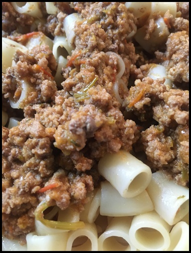 Gracias a Dios logre mi cometido antes de medio día y al llegar a la casa me apresure a preparar el almuerzo, Algo rápido y sencillo: Pasta con carne molida.