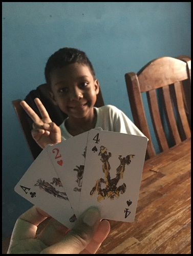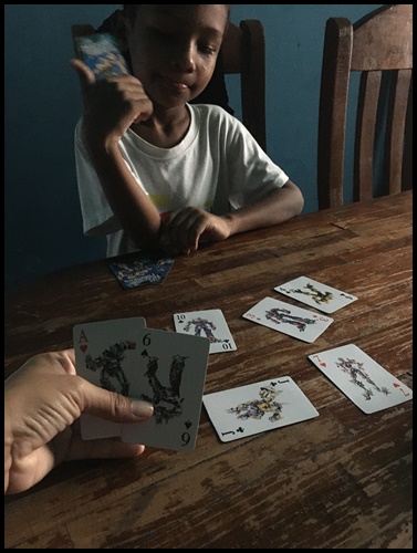 Nos sentamos entonces en la mesa a jugar cartas, lo enseñe porque desde que le compre el paquete no había tenido el tiempo de sentarme y explicarle.