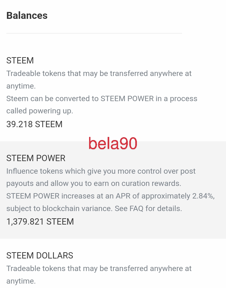 | @bela90 | 1,337 SP - 1,379 SP She made 58 steem power and 39 steems this week. You can actually hit your target next week if you're consistent. Don't let your guard down. Keep it up. You made 6 posts this week. ![]() |
