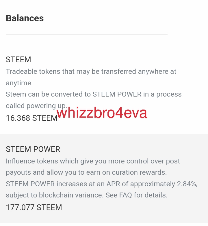 | @whizzbro4eva | 168 SP - 177 SP He made 9 steem power and 16 steems this week. You can do better next week. I know you have pending posts yet to pay out. You made 3 posts this week. Keep it up. ![]() |