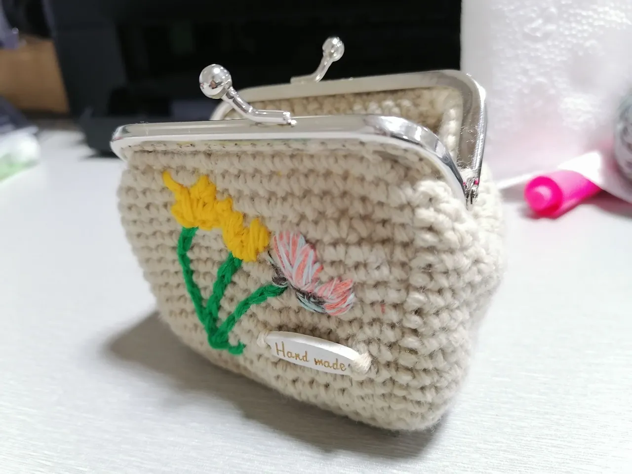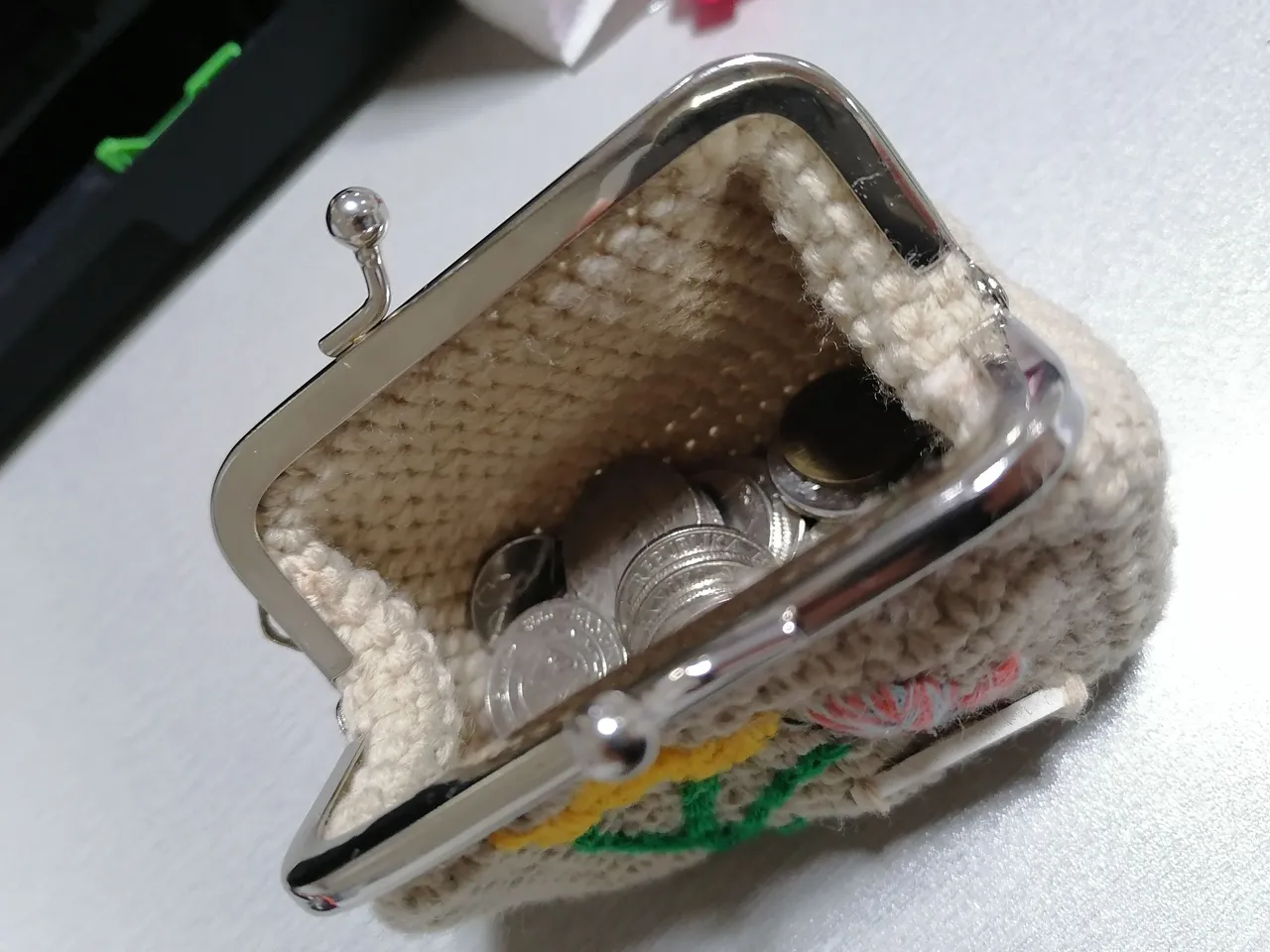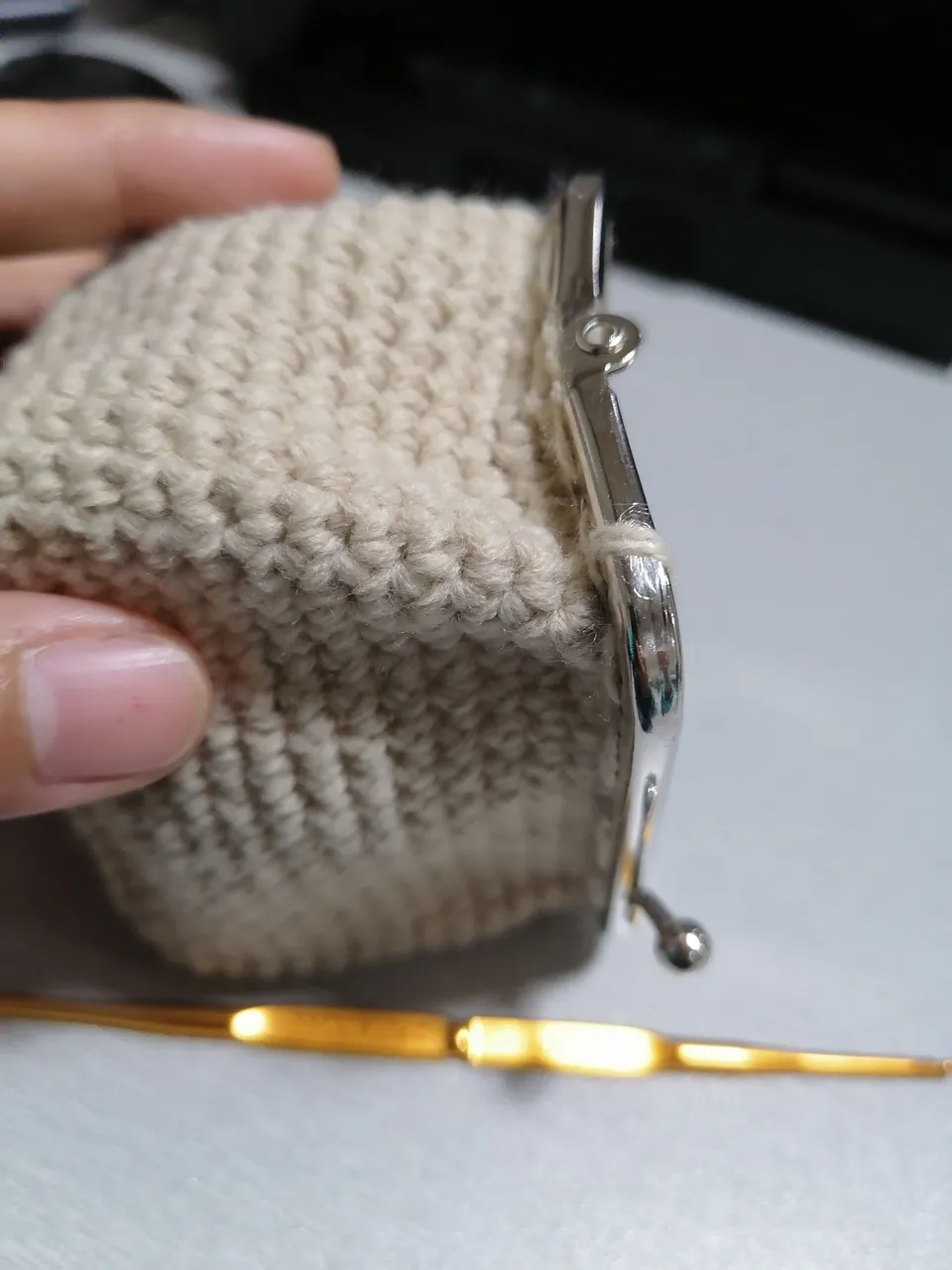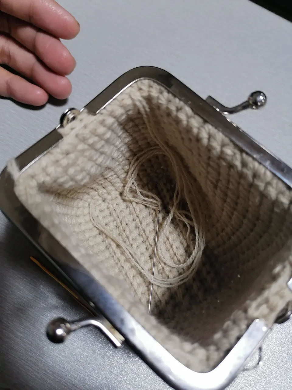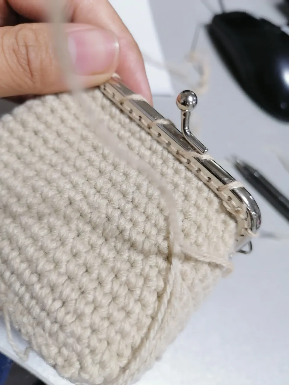 First attempt in making coin purse with metal frame