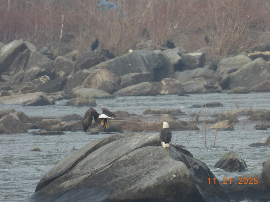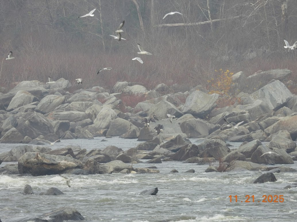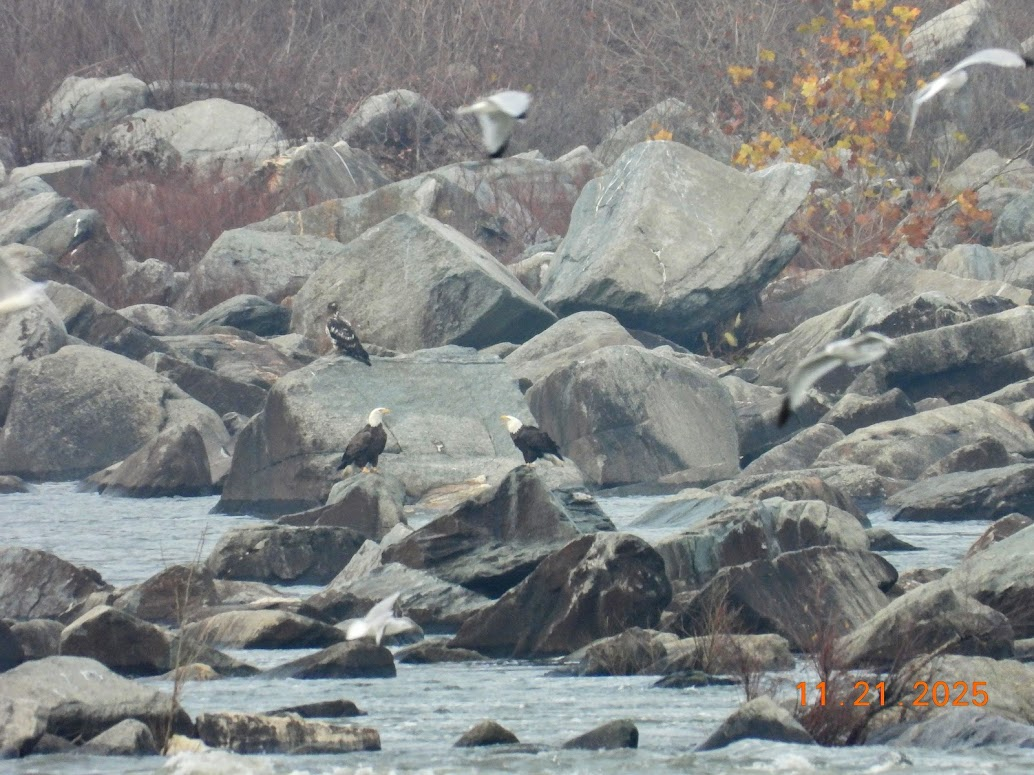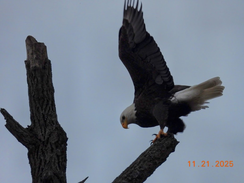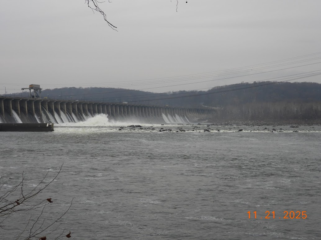 In June, it was a spur of the moment trip, since we had driven in that general direction, anyway. The goal was simply to learn where to park and where to view the birds. Mission Accomplished. During that trip, we learned that the Bald Eagles are migratory birds, and they will be most prevalent at the dam between November and March. Later, I saw another report that the small peak window inside that large peak window is probably the last week of November and the first week of December.