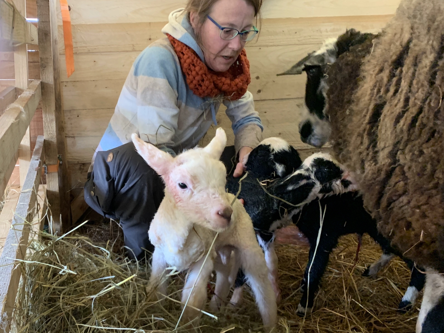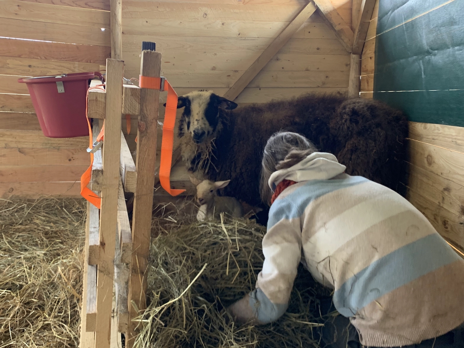 Hihi, nee, Wäsche und Wickeln nicht. Aber ich muss viel hin- und herlaufen und neben der Versorgung viel gucken, ob es allen 5 Lämmern und den beiden Müttern gut geht... 😁