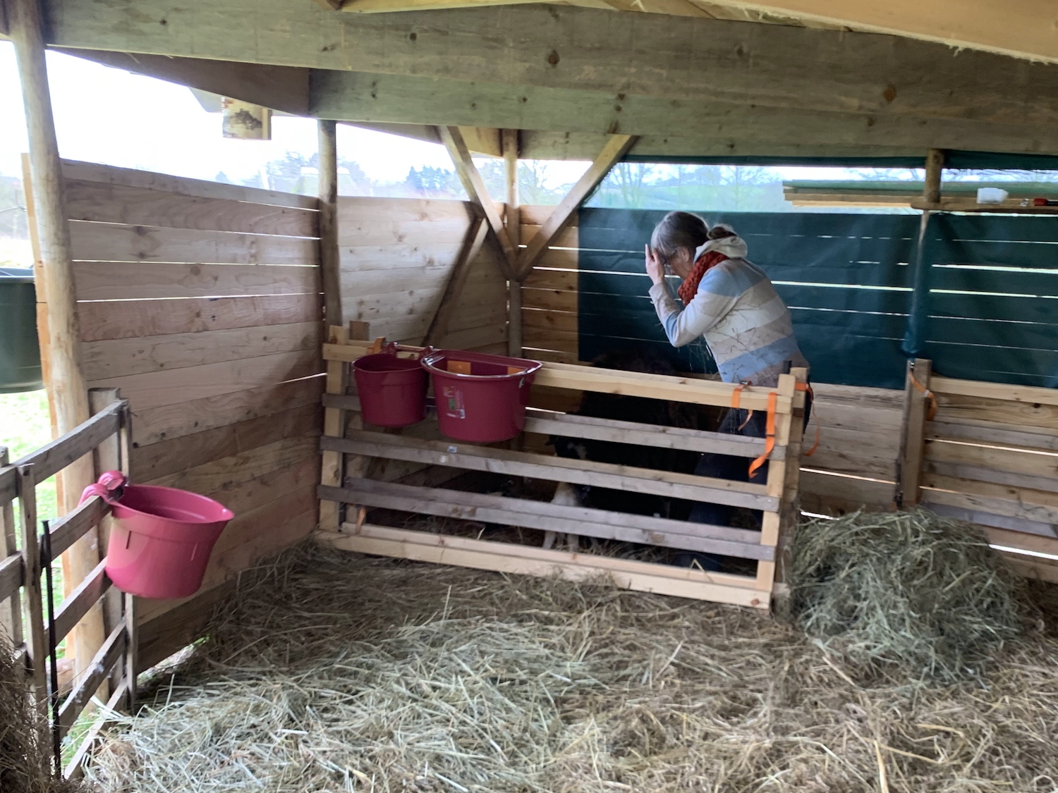 Etwa eine Stunde später kam Ralf mit dem Auto und wollte mit schwerem Gerät auf der Weide arbeiten. Ich bat ihn, seinen Plan zu verschieben, da ein Schaf mit Wehen im Stall stünde und... "Oh, es ist ganz schön leise dort drinnen..."
