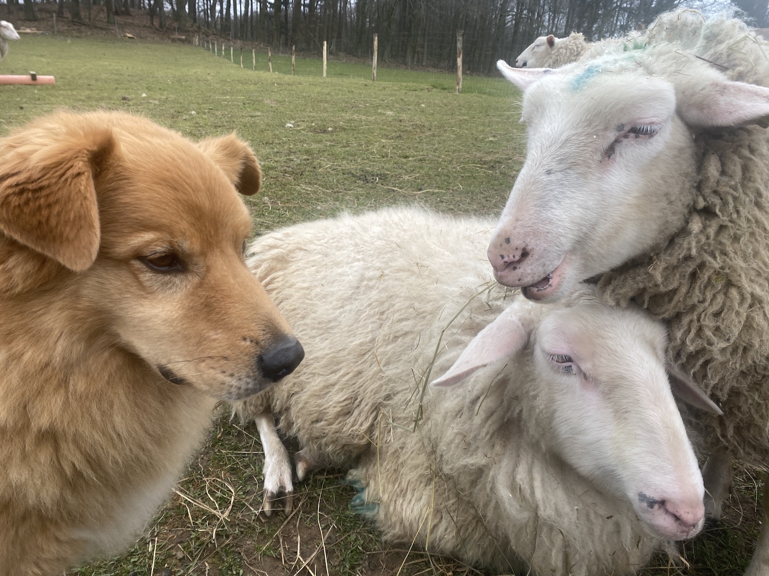 Weshalb Mäx, der beste Schäferhund der Welt - der hier brav mit der Herde ('Lieschen Höger' und 'Filou') draußen wartet, weil er nicht ans Wochen(heu)bett darf - vielleicht nie ein richtiger Schäferhund wird, ist eventuell auch ganz unterhaltsam. Ja, ja, (fast) alles Schaf und niiiie langweilig... 😉