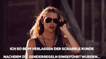 Es ist leider kein Aprilscherz, sondern eine offizielle Pressemitteilung des Spieleherstellers Mattel, dem Herausgeber des deutschen SCRABBLE-Brettspiels, über die peppermint24 informiert. Na ja, wie wir Pepe kennen, nimmt er diese und den über die natürliche Entwicklung unserer Sprache der phantastischen Möglichkeiten gestülpten "Gender-Wahnsinn" natürlich gepflegt und erfrischend aufbrausend auseinander. Damit bietet er gleichzeitig Anlass zu nahezu sprachwissenschaftlichen Dialogen unter eingefleischten DU-Scrabblern.