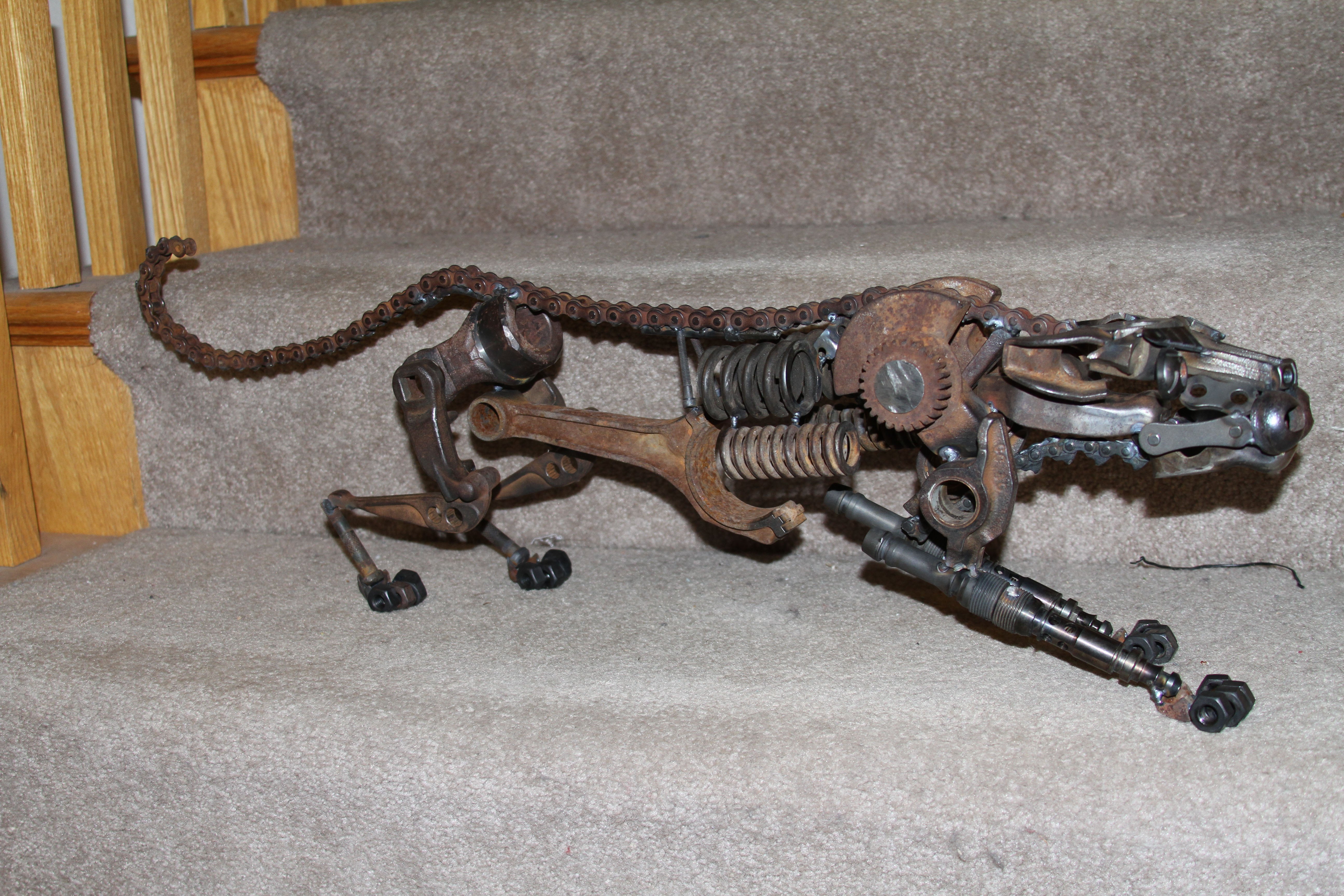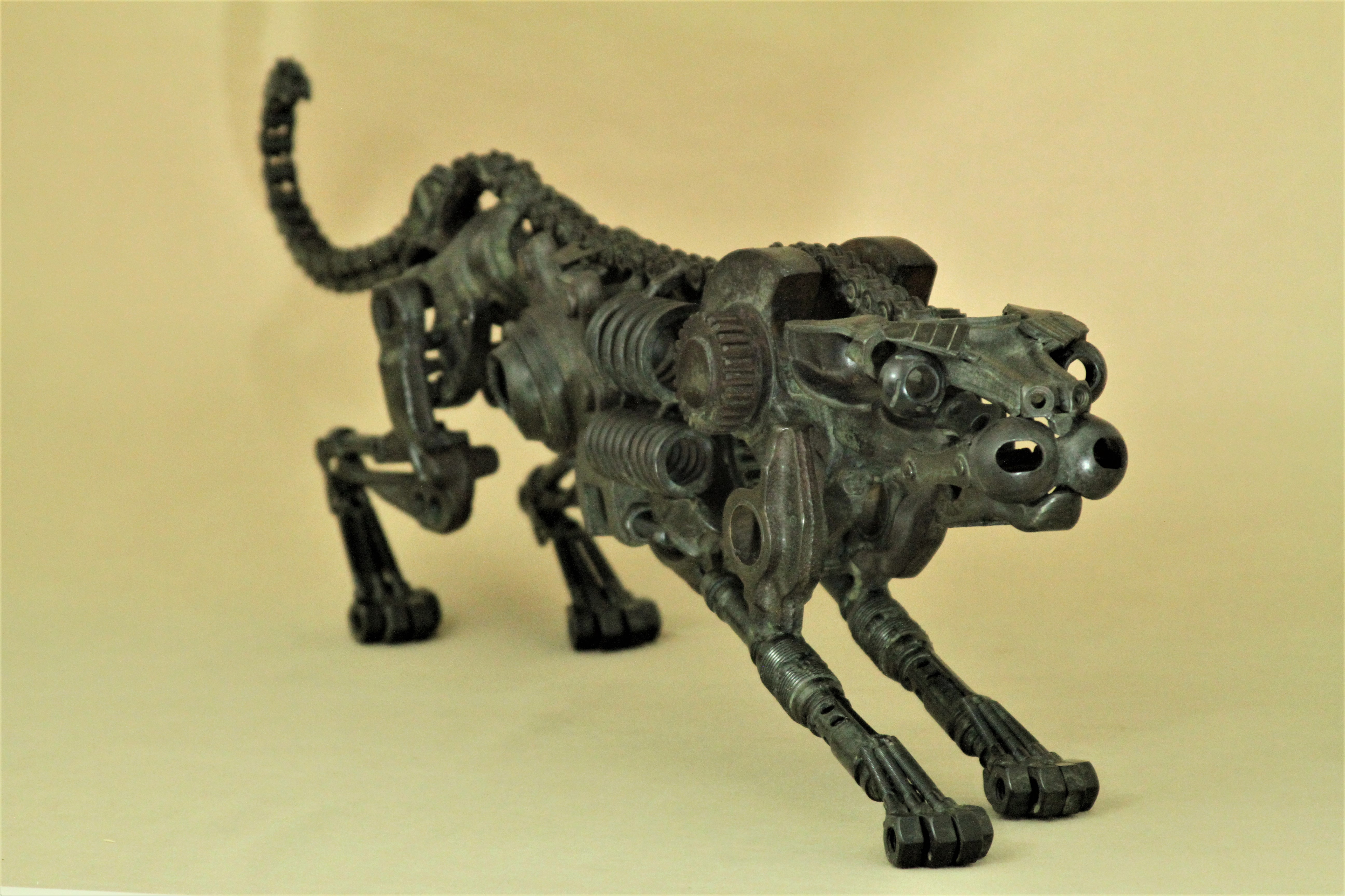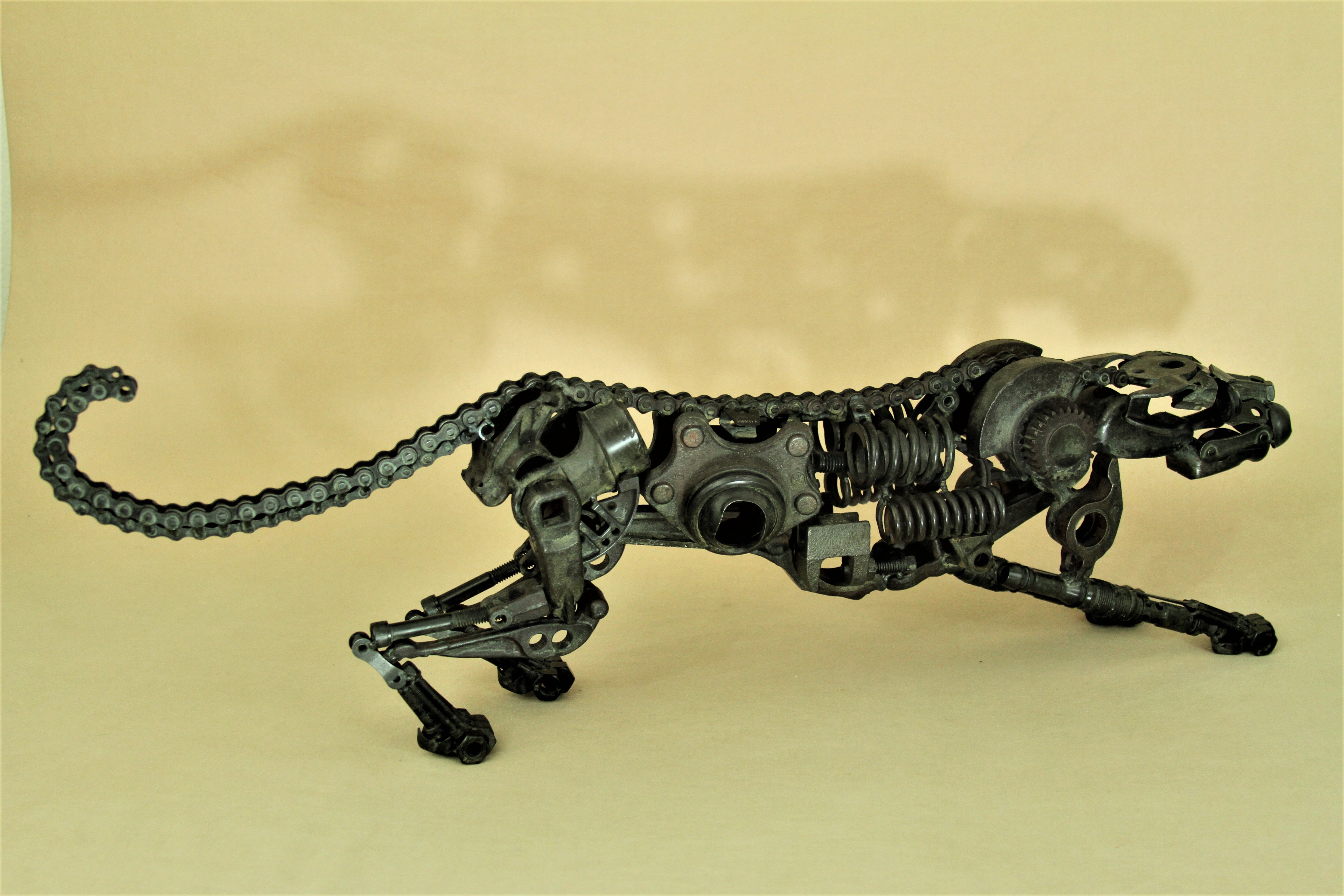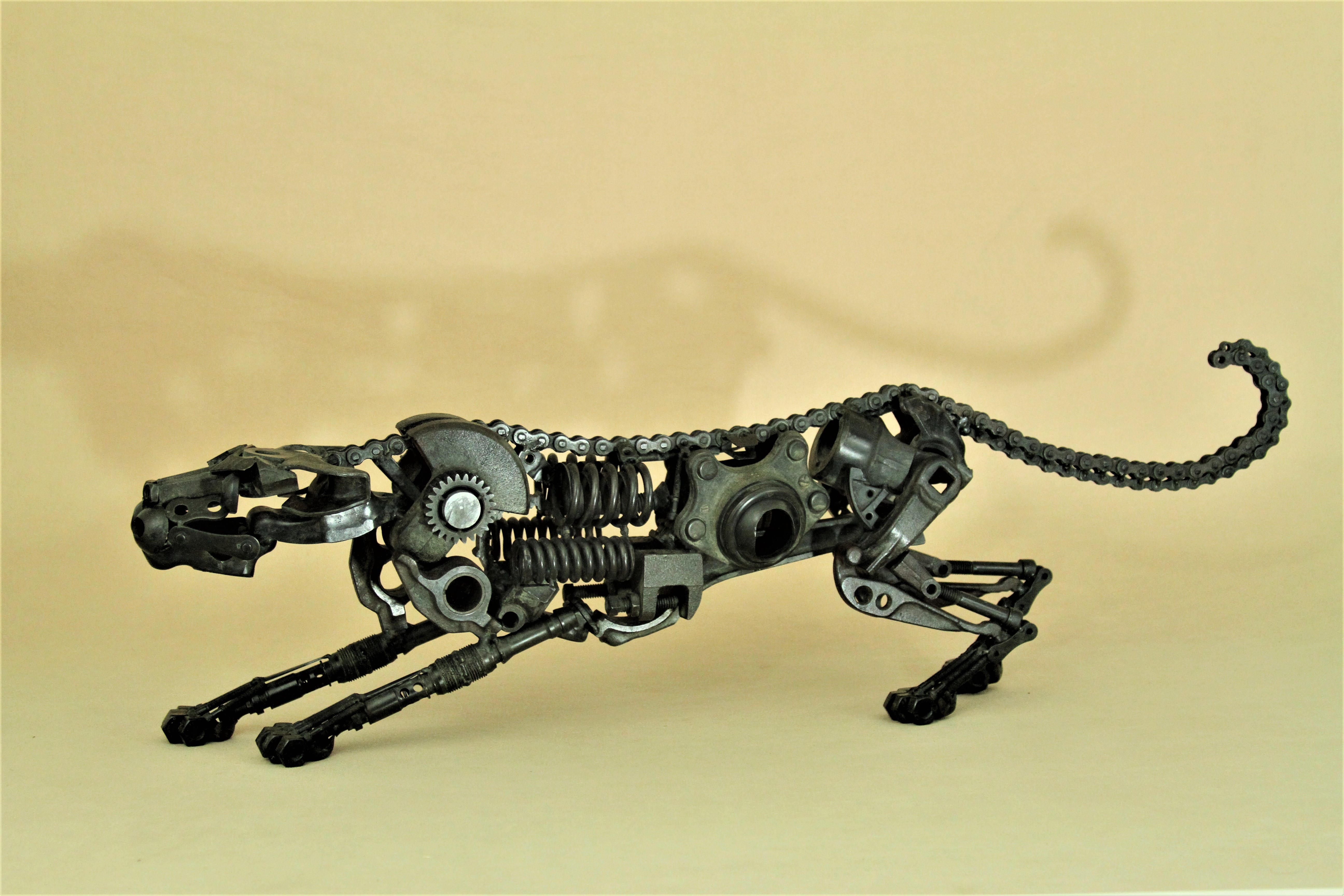 I recently finished this 30 inch long Stalking Panther sculpture, made of found objects. It is one of several cat sculptures I have made, and my favorite so far.