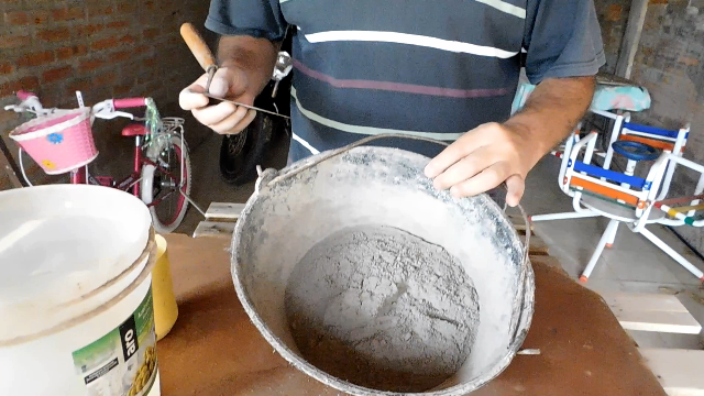 When we achieve uniformity between the cement and the sand, we add the water, add little by little until we make a homogeneous mixture, we do not want to overdo it with the liquid, and it becomes very loose.