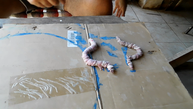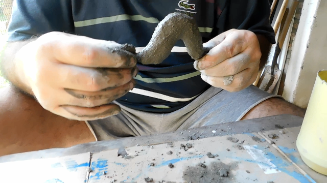 Now we are going to take the arms and place them in a container with cement, leaving it for a while for the fabric to absorb the adhesive. This will allow us to add cement to the handles, for this we prepare a paste, and place on the cement-soaked fabric, very gently shape with our hands.