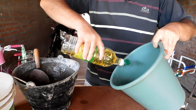 Having prepared the material we take the plastic and smear the interior with the oil, we must cover all its walls. This procedure is done to be able to extract the pot, otherwise, the piece could be broken, and it will not serve us for the utility that we want to give them.