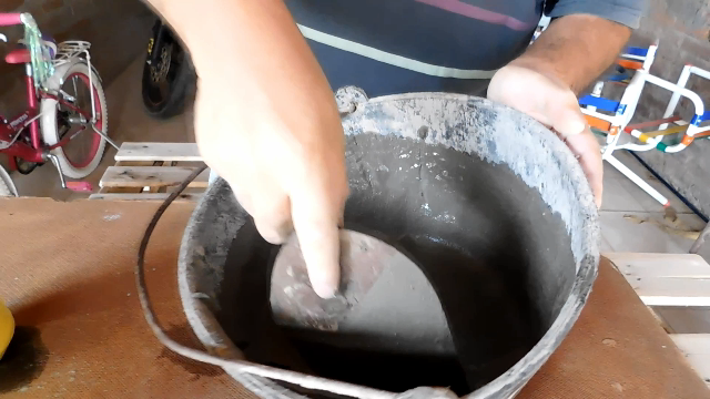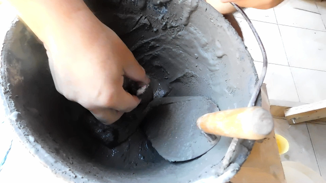 Now we are going to dump the prepared material inside, then we will place the counter mold inside so that the cement rises and covers the entire surface of the plastic, if necessary add something heavy to keep the counter mold in place. Now you have to let it rest for three days