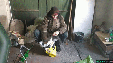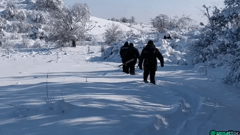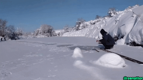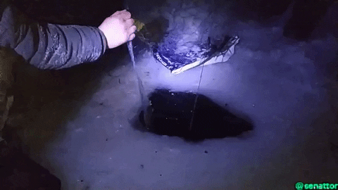 Everything is ready, you can go to the river. After 5 minutes, we remembered that we had forgotten the stick, without which the fishing net under the ice could not be set. Nikolai returned for the stick. This is the second actor of today's #gif-film.