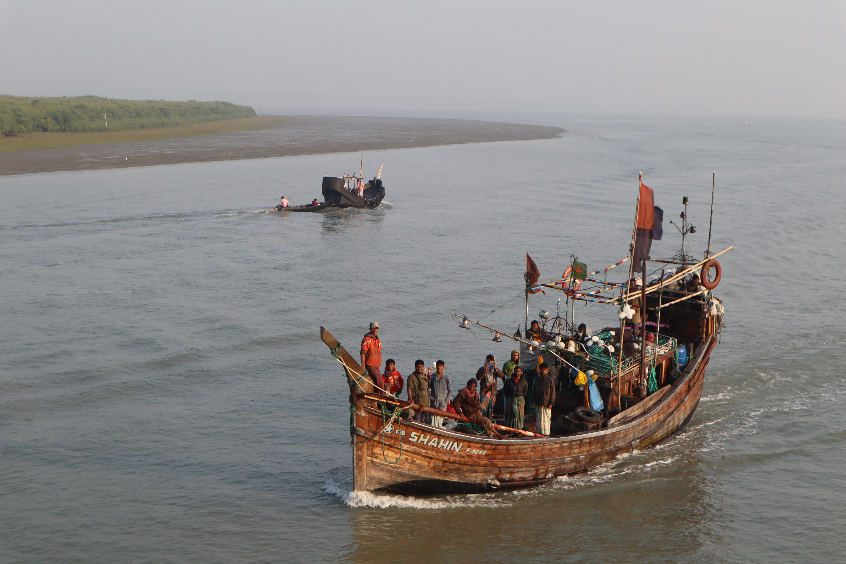 We were docked in a river named "Naf" and what you see is the mouth of that river where it meets the Bay of Bengal.