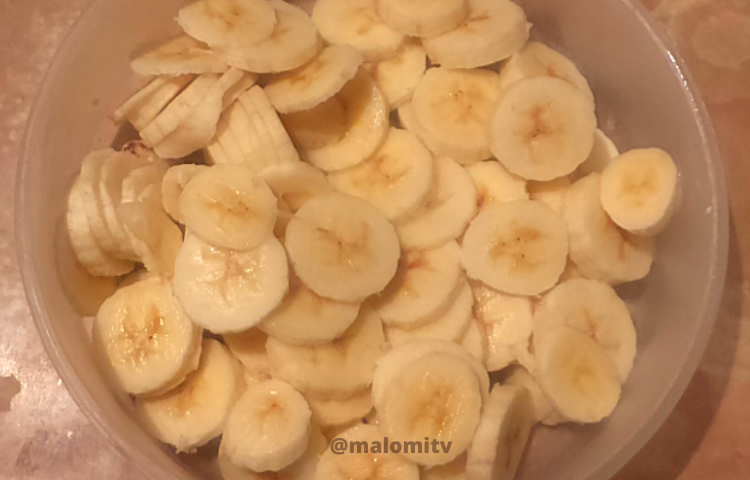 1.- Pica en rodajas delgadas el cambur, lo vas a colocar en el envase de plástico y lo llevas al congelador (Muévelo cada cierto tiempo hasta que se congele). Paralelo a esto, haz el jugo de guanabana y cuelalo bien.