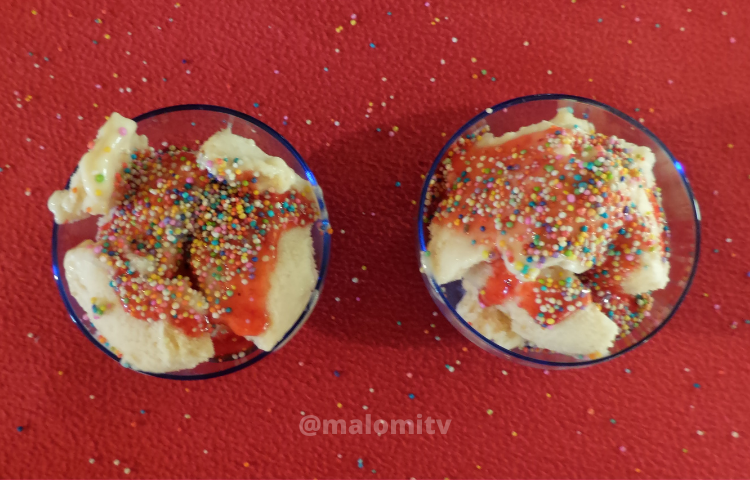 5.- Serve the ice cream in a glass or in the container of your preference, put colored rains, peanuts or chocolate or any syrup you have.