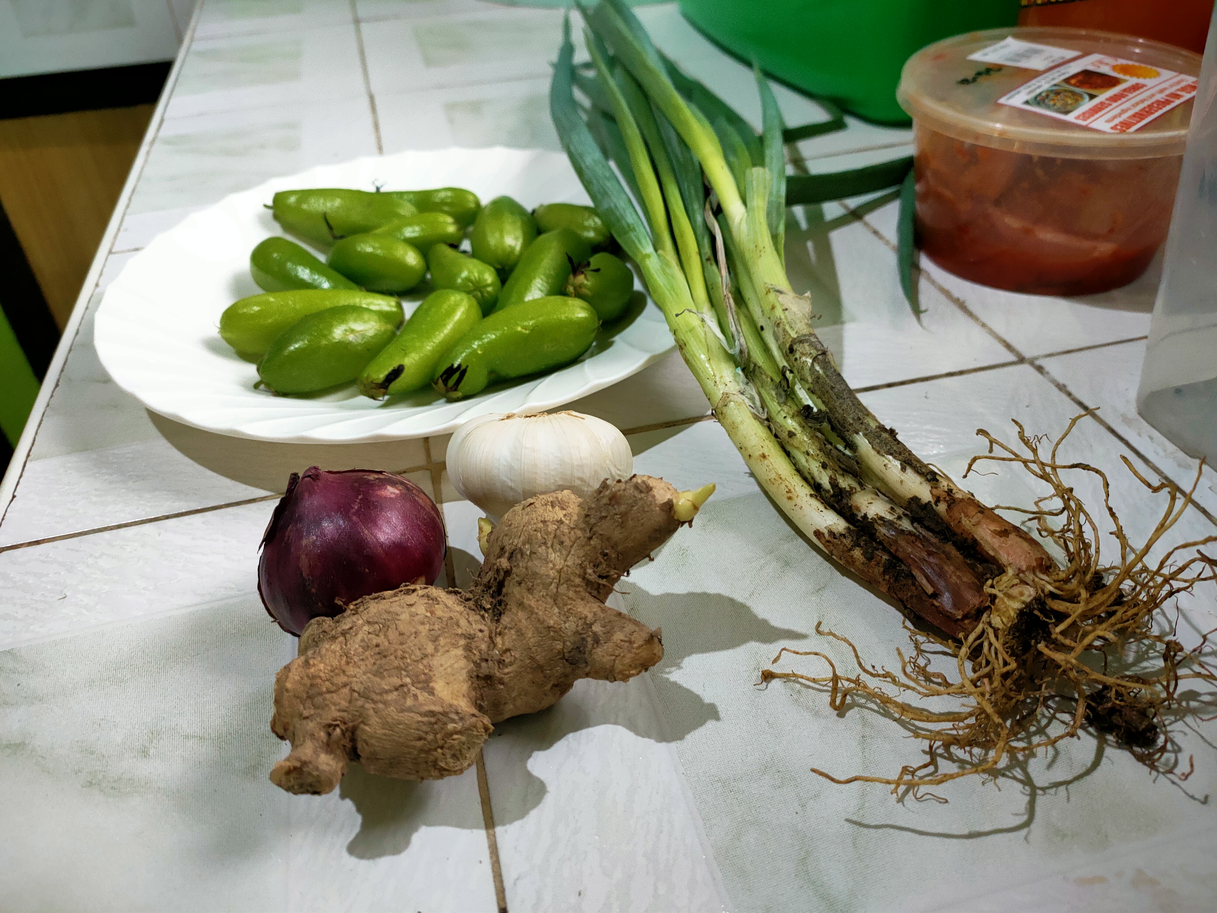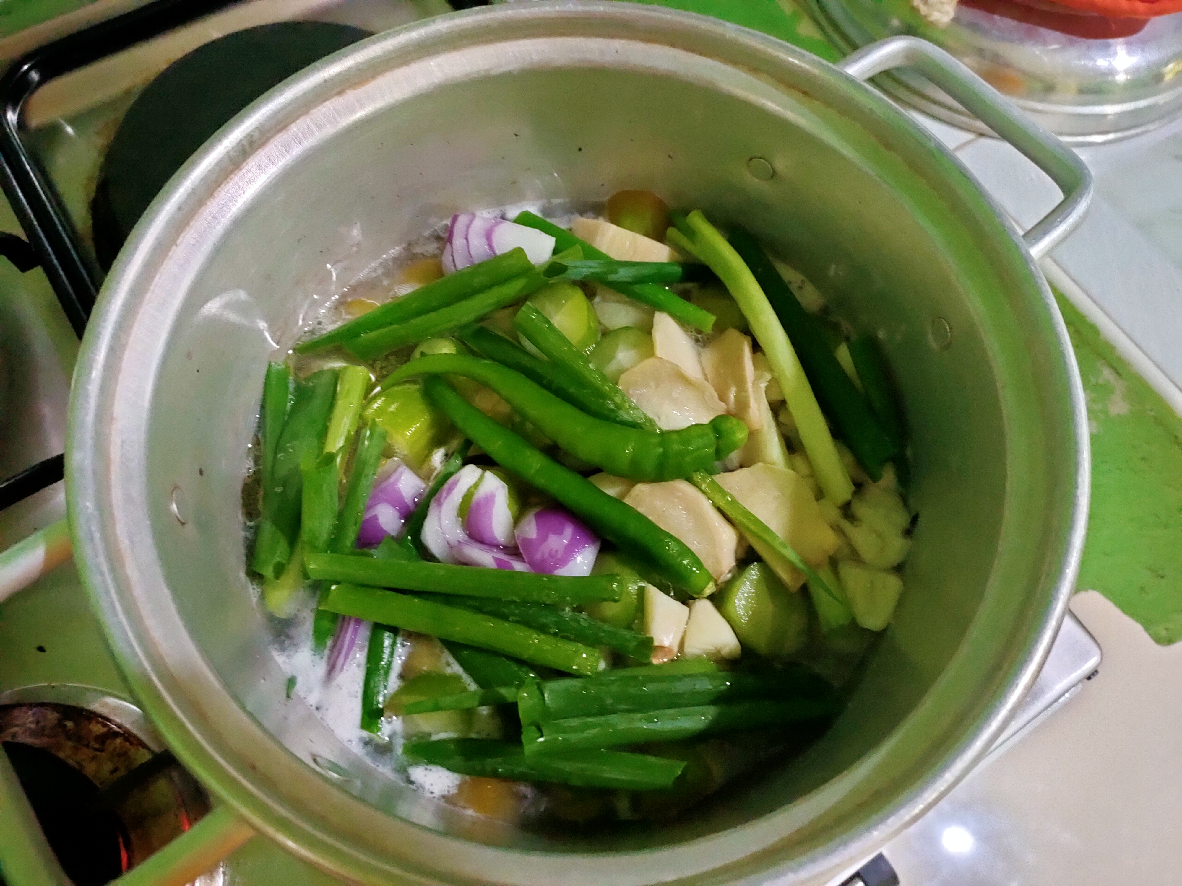- Step 1: Arrange the fish in a cooking pot along with the camias, ginger, garlic, spring onion and long green pepper.