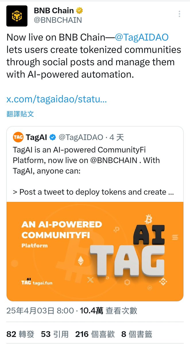 @TagAIDAO 有可能让bsc链改变amy14913.tiptag (59)in TipTag • 11 months ago @TagAIDAO 有可能让bsc链改变pvp模式,让社区建设者翻身做主人 #TTAI #BSC #TTAI #BSC