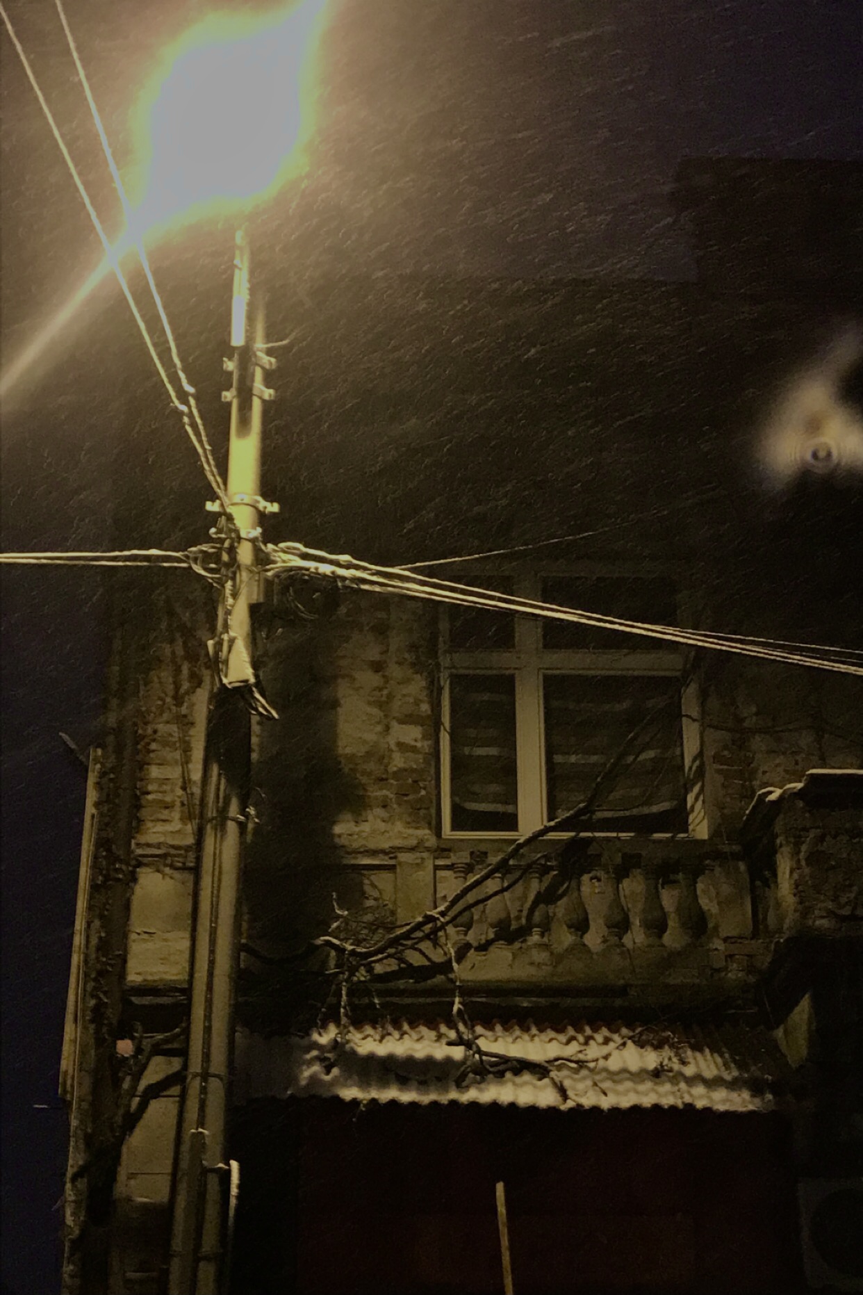 All day was light snow but in the evening it was big white snowflakes ❄️