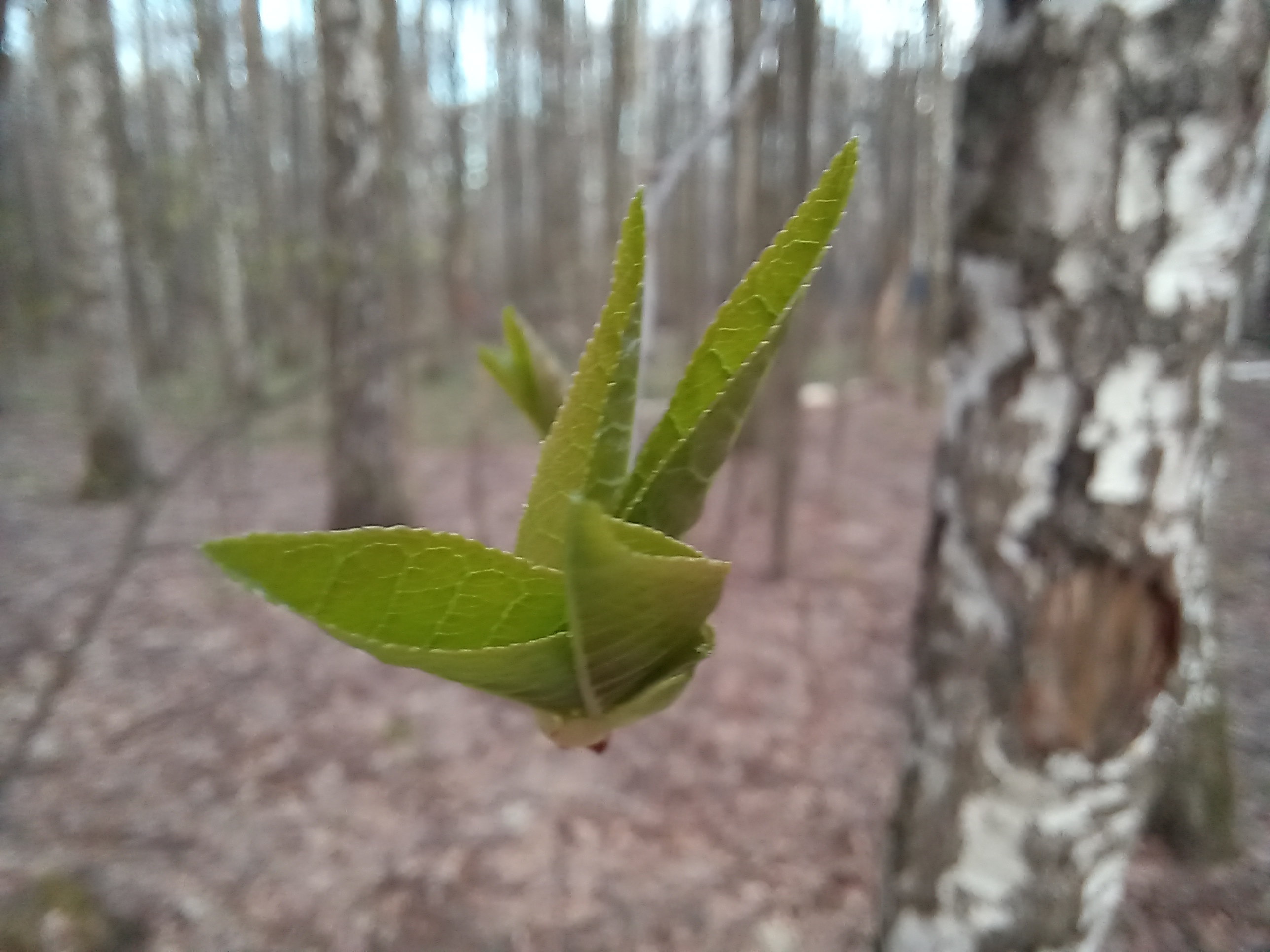 Очень стремительно все зеленеет. На деревьях проклюнулись почки и появились первые листочки: