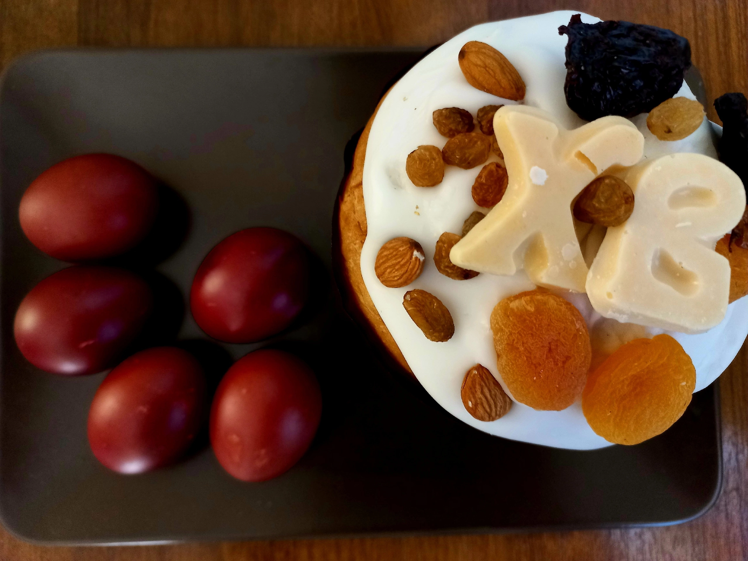 Куличами хвастаться не буду - я их не пеку, в церкви не освящаю. В "Перекрестке" купила. Макушка у кулича симпатичная была, вкус не поразил.