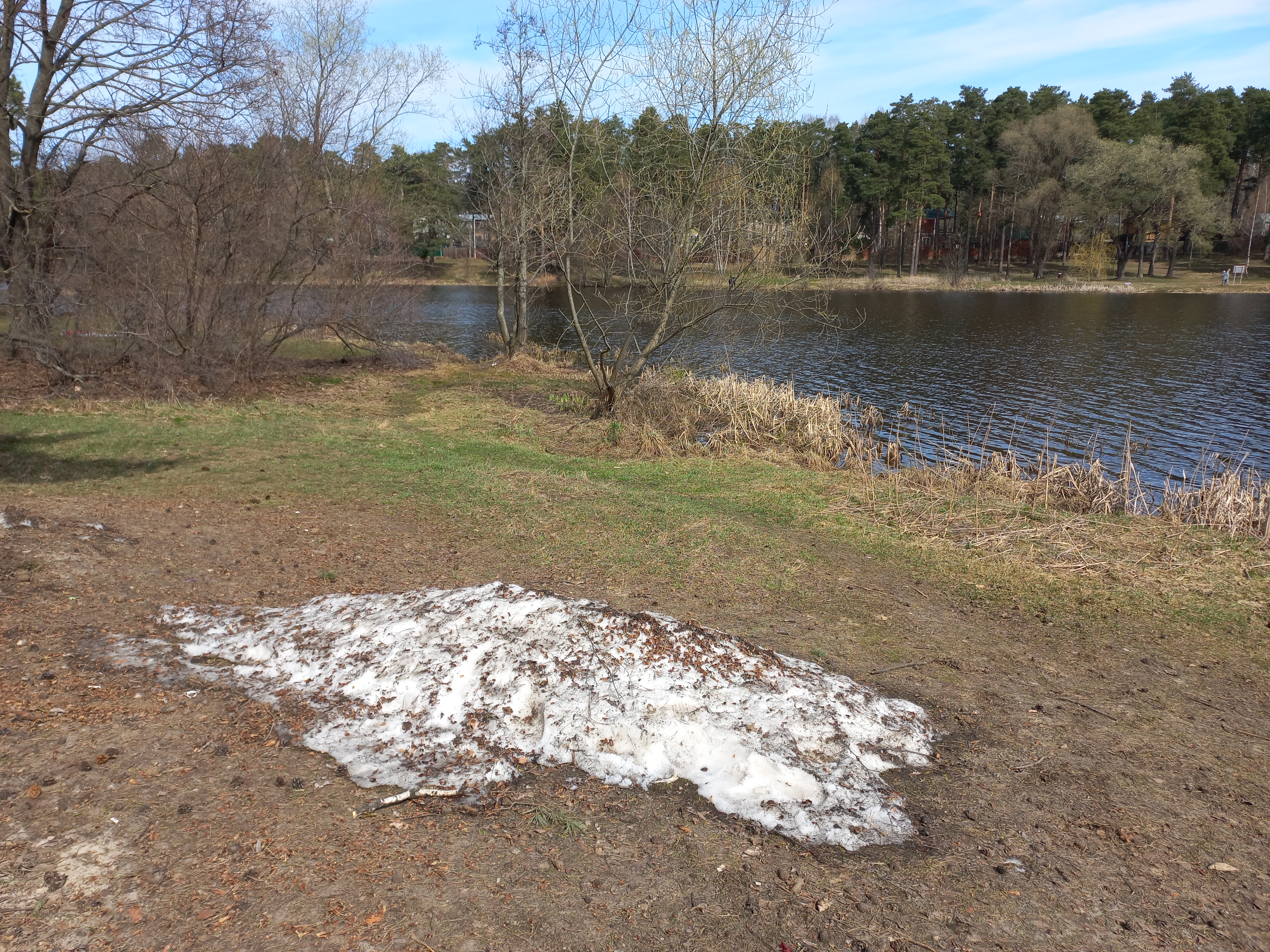 Но несмотря на теплую погоду, кое-где еще лежит снег: