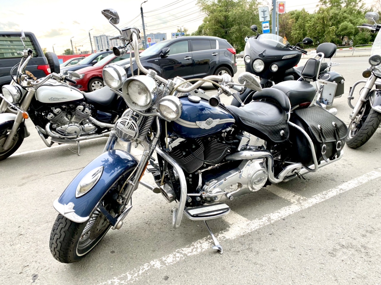 Сегодня я стала свидетельницей такой встречи. Самих водителей я не видела. Исключительно их табун. Судя по номерам, здесь было больше представителей Самарской области. Но встретился Харлей-Дэвидсон и с Питерскими номерами. Возможно он не один такой.