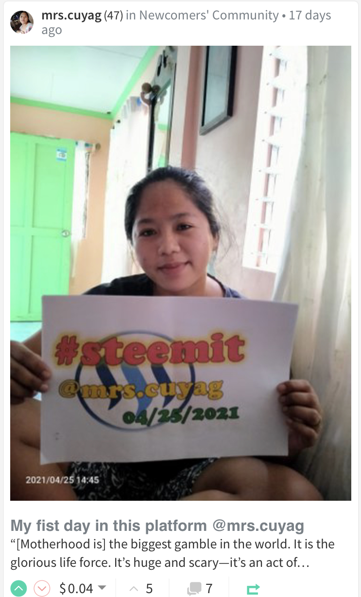 @steemit but when I was pregnant I began to refrain from using gadget because I felt so dizzy easily once I am going to look at the screen. So, that's why I became inactive for a couple of years. And just this year, I decided to be back. I am so amazed by its development. I already saw plenty of communities wherein they provided contest and different entries to tackle in which it's a big help for us writers that we will not think anymore and have hard time which caused headache to search for a certain topic.