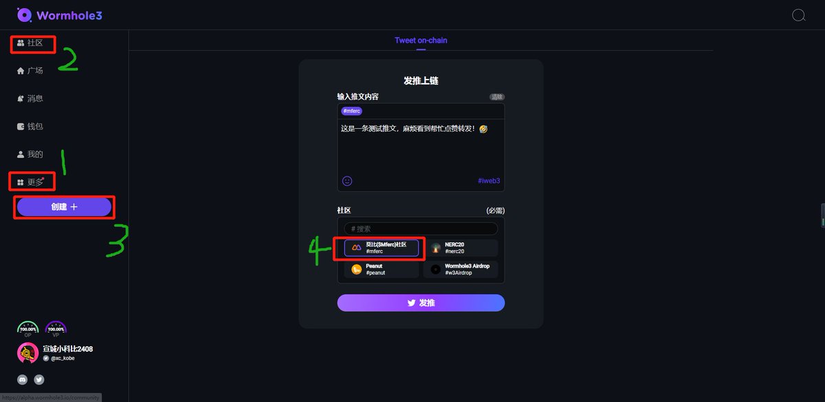 3⃣点击创建-选择莫比社区标签,编辑推特内容发送