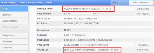 kekuatan efektif akun Saya saat ini 71,926.09 SP, Saya mendukung pengguna secara merata melalui jalur kurasi postingan bebas plagiarisme dengan Voting CSI 18.8 ( 0.00 % self, 179 upvotes, 112 accounts, last 7d )