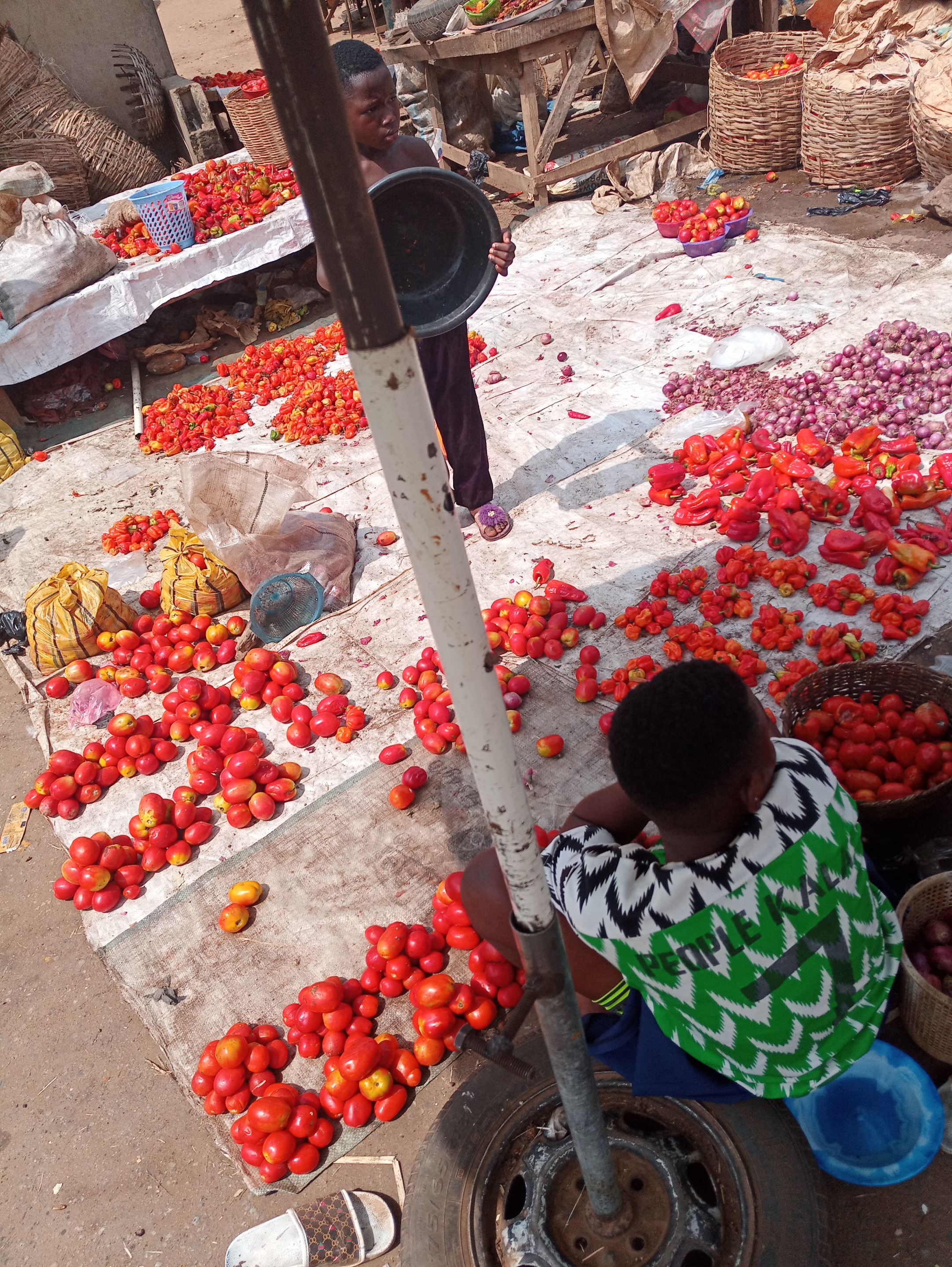 This is a view where they sell pepper, tomatoes and also onions also