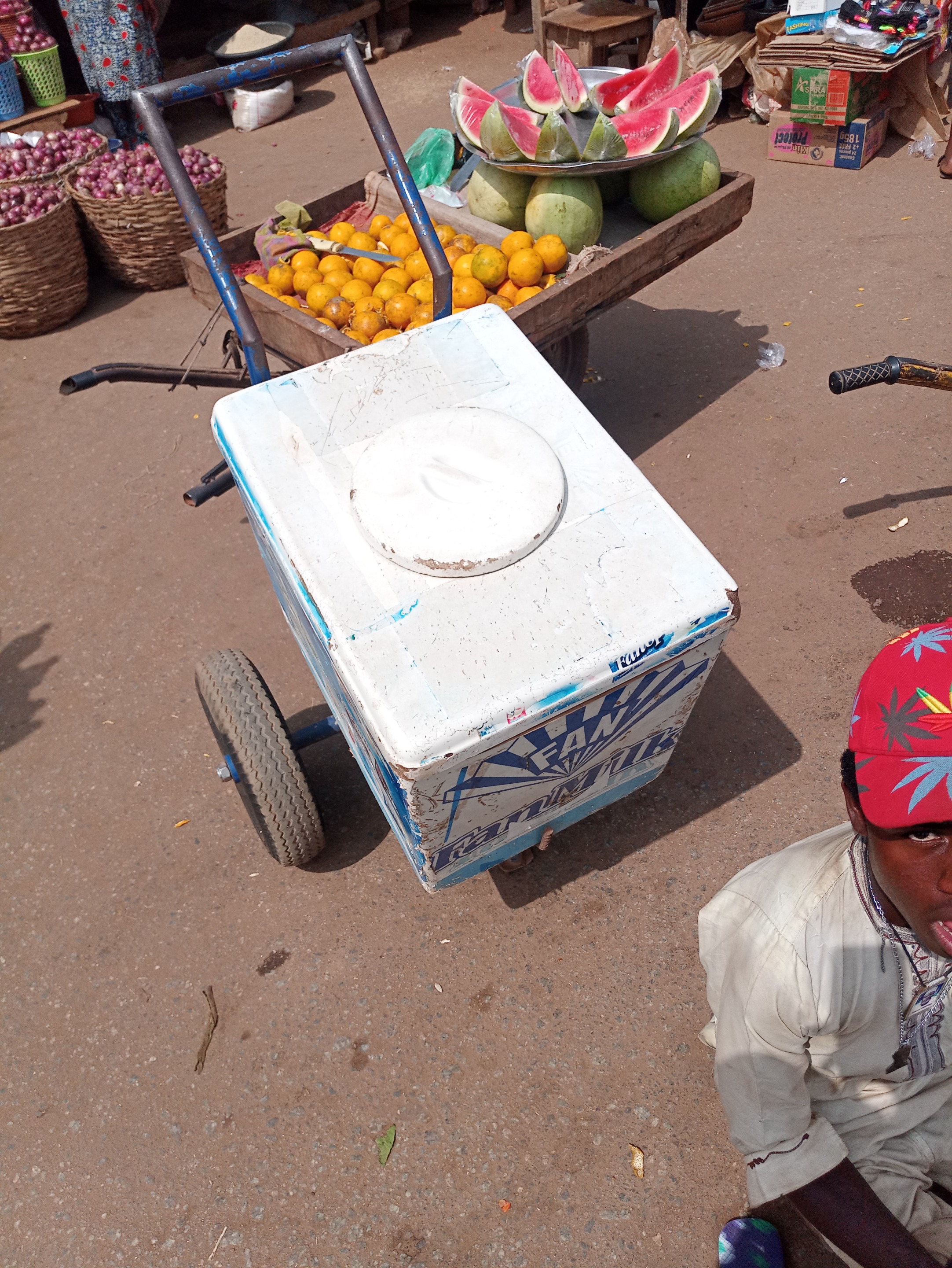 This is a view of where they sell orange and water melon and not only that but also the fan ice cream also