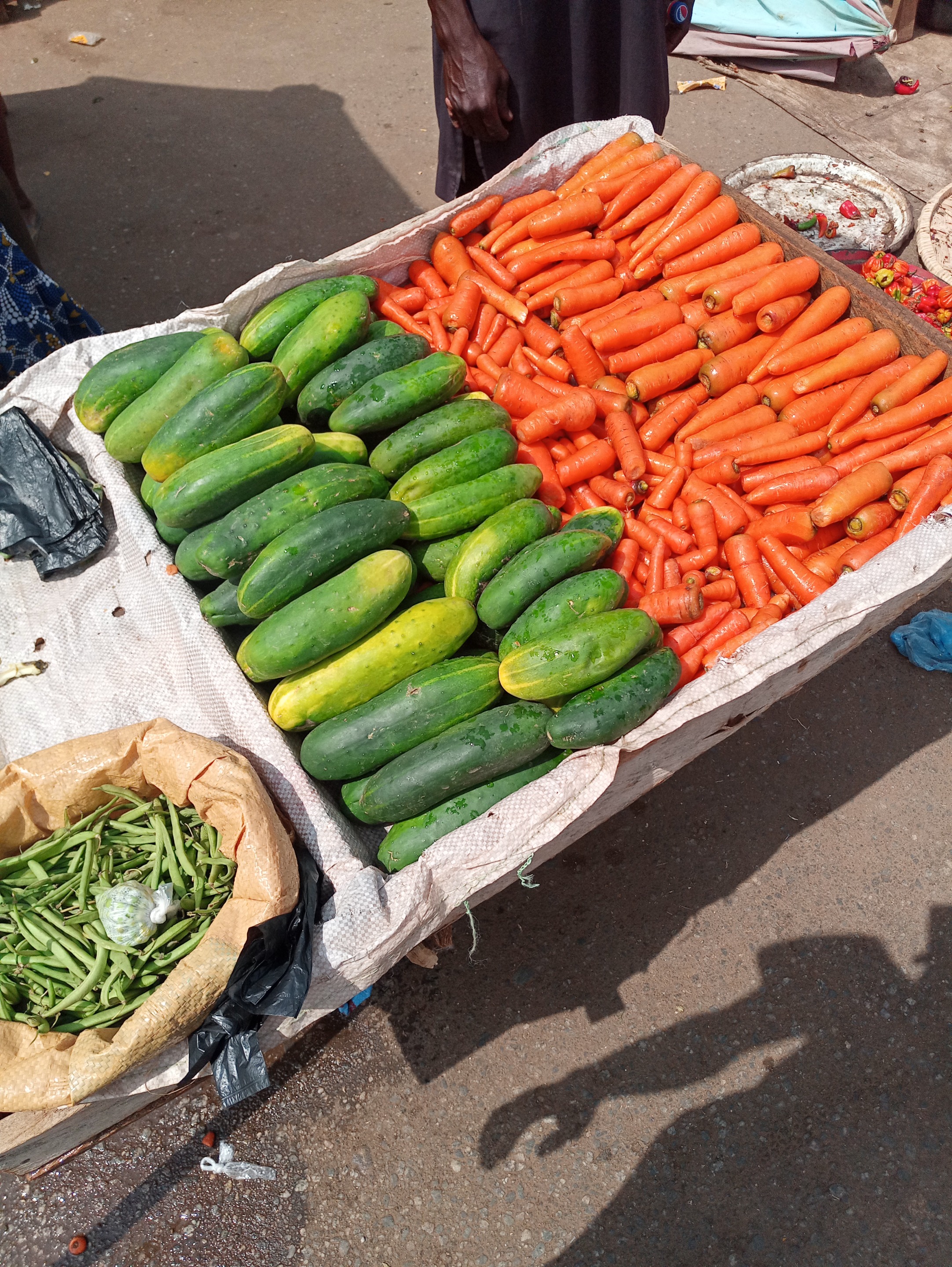 This is a view of a carrot and cucumber selling spot also located around the market side