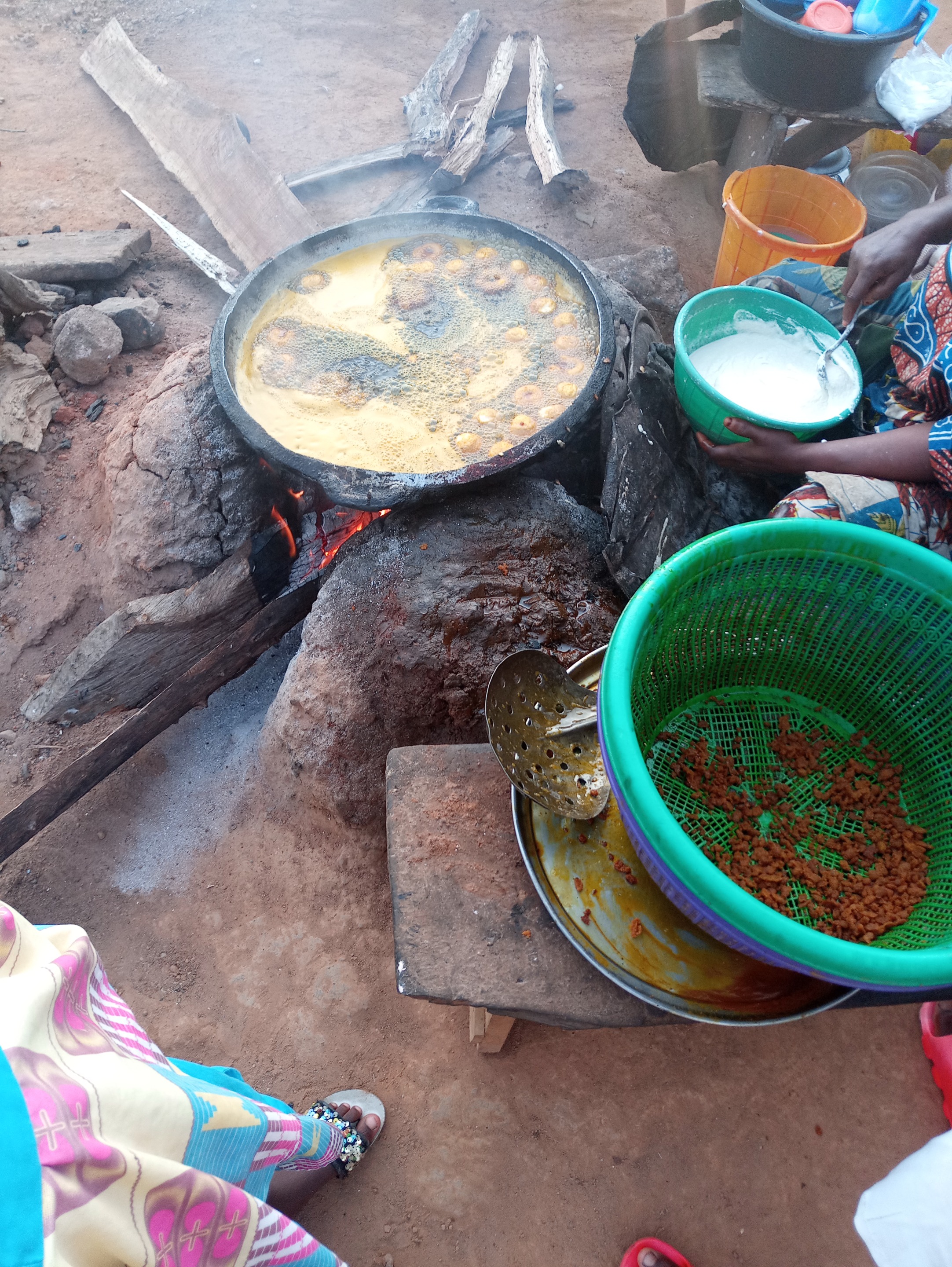 This is a view where they fried beans cake for sale. As you can see some beans cake is still on the fire as you can see