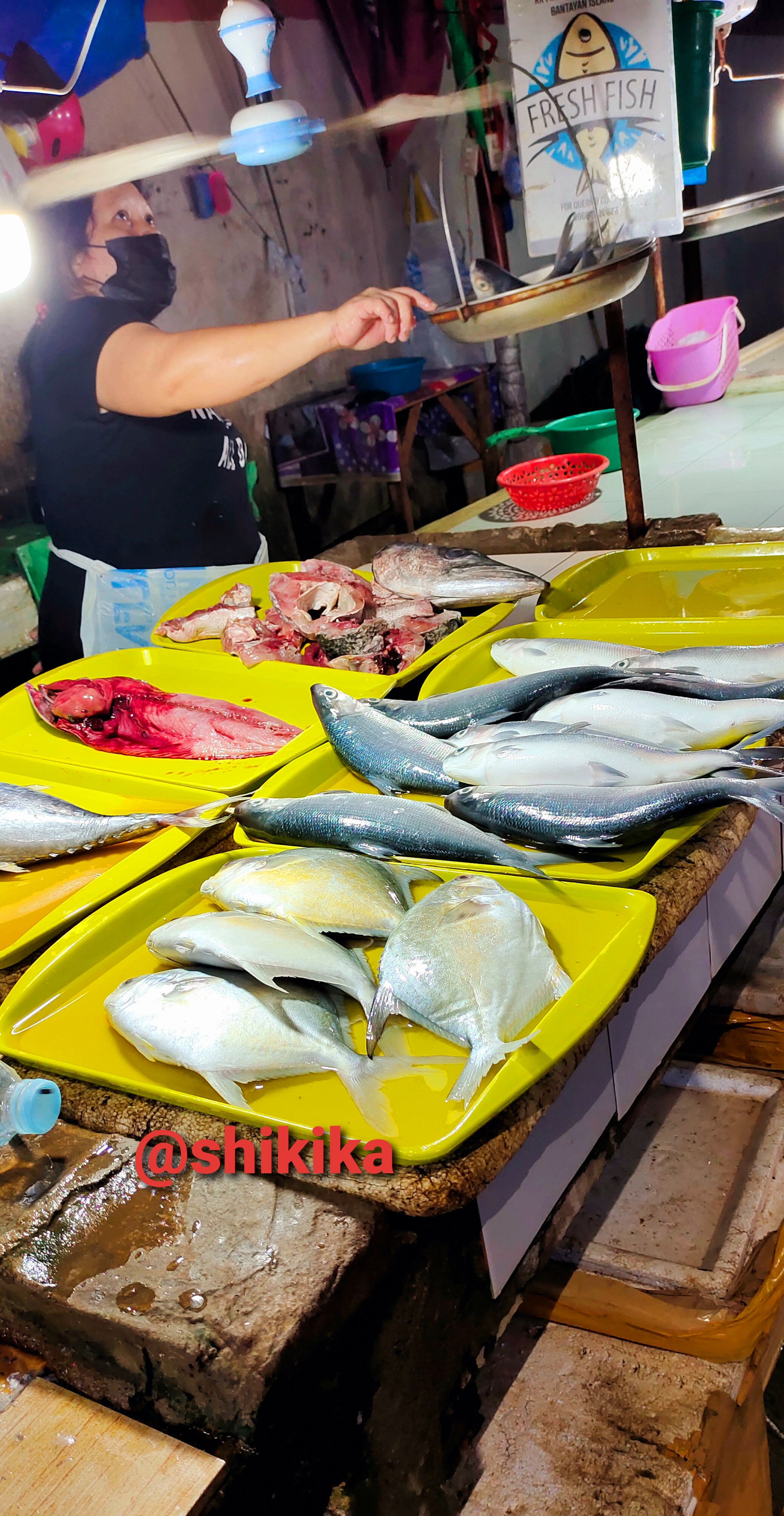 From the fruits vendors, we walk a little more to the wet market. When we arrived at the wet market, there are only few customers and only few fish on sale. Then, I buy some fish. I spend Php 160.00 or $3.20 for the fish.