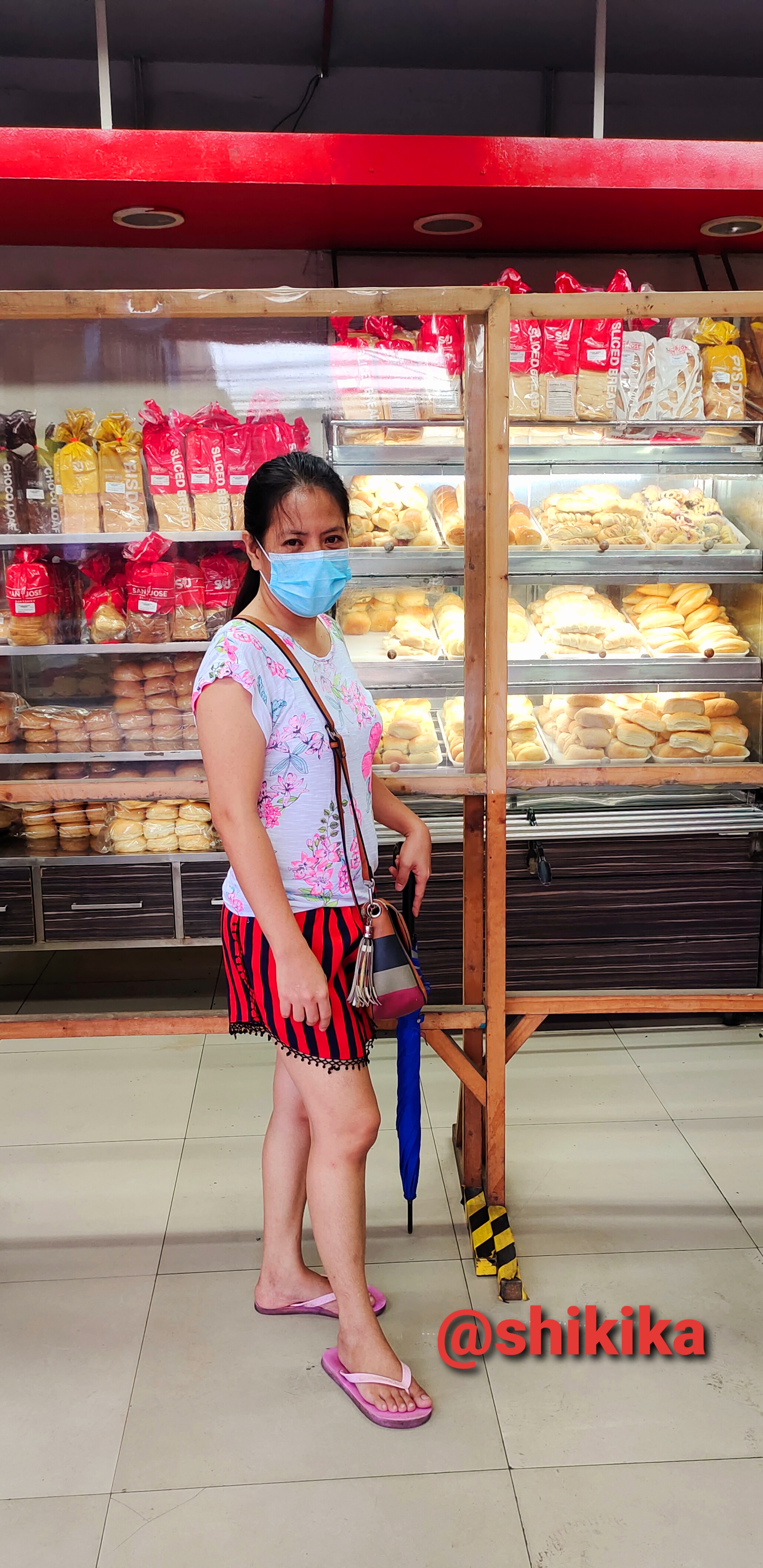 I go out this afternoon together with the wife of my brother. The first thing we do is we go to the bakeshop and buy some bread. I spend Php 50.00 or $1.00 for the bread. There are only few customers. Every customers follow health protocols such as wearing face mask and one meter apart.