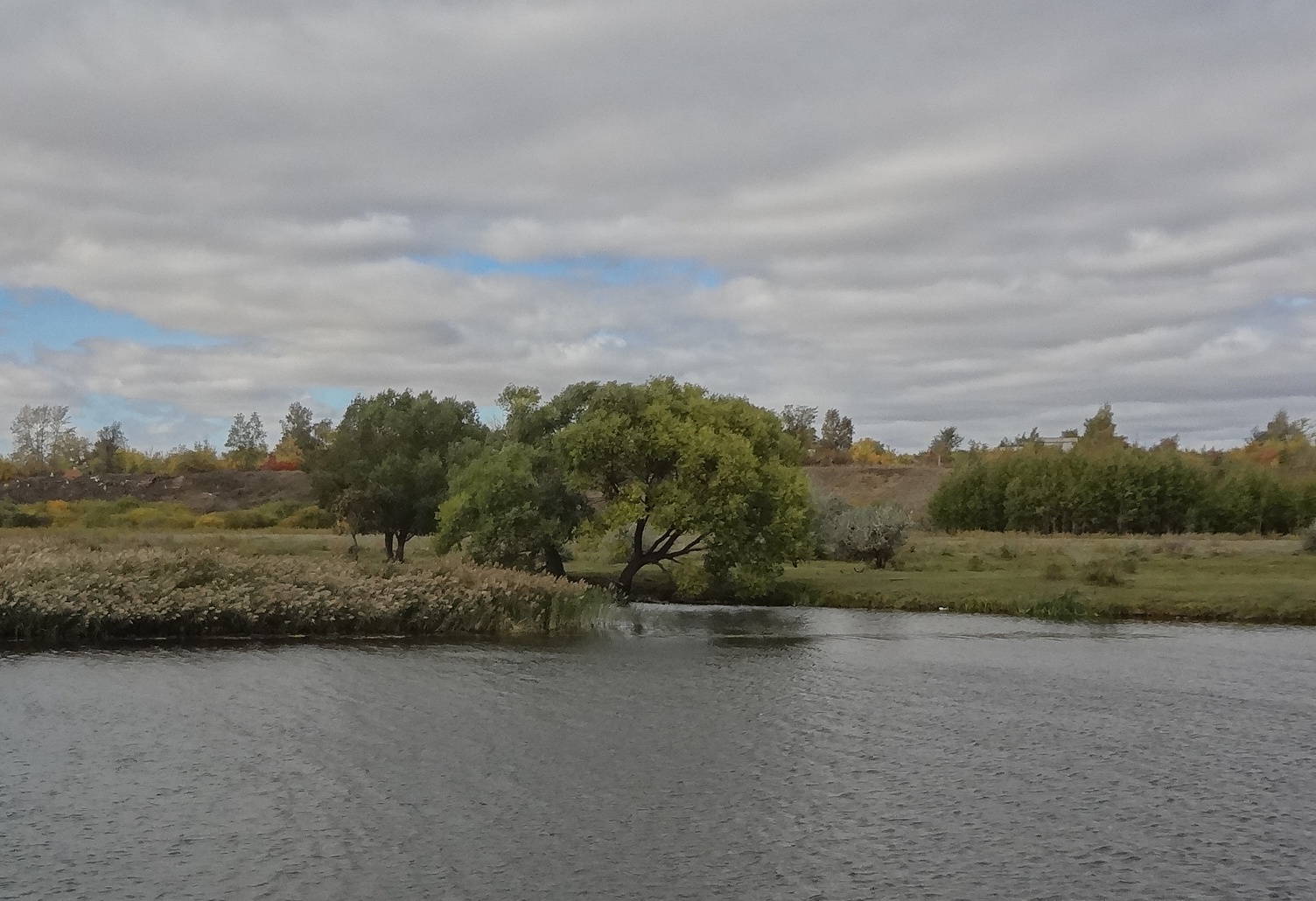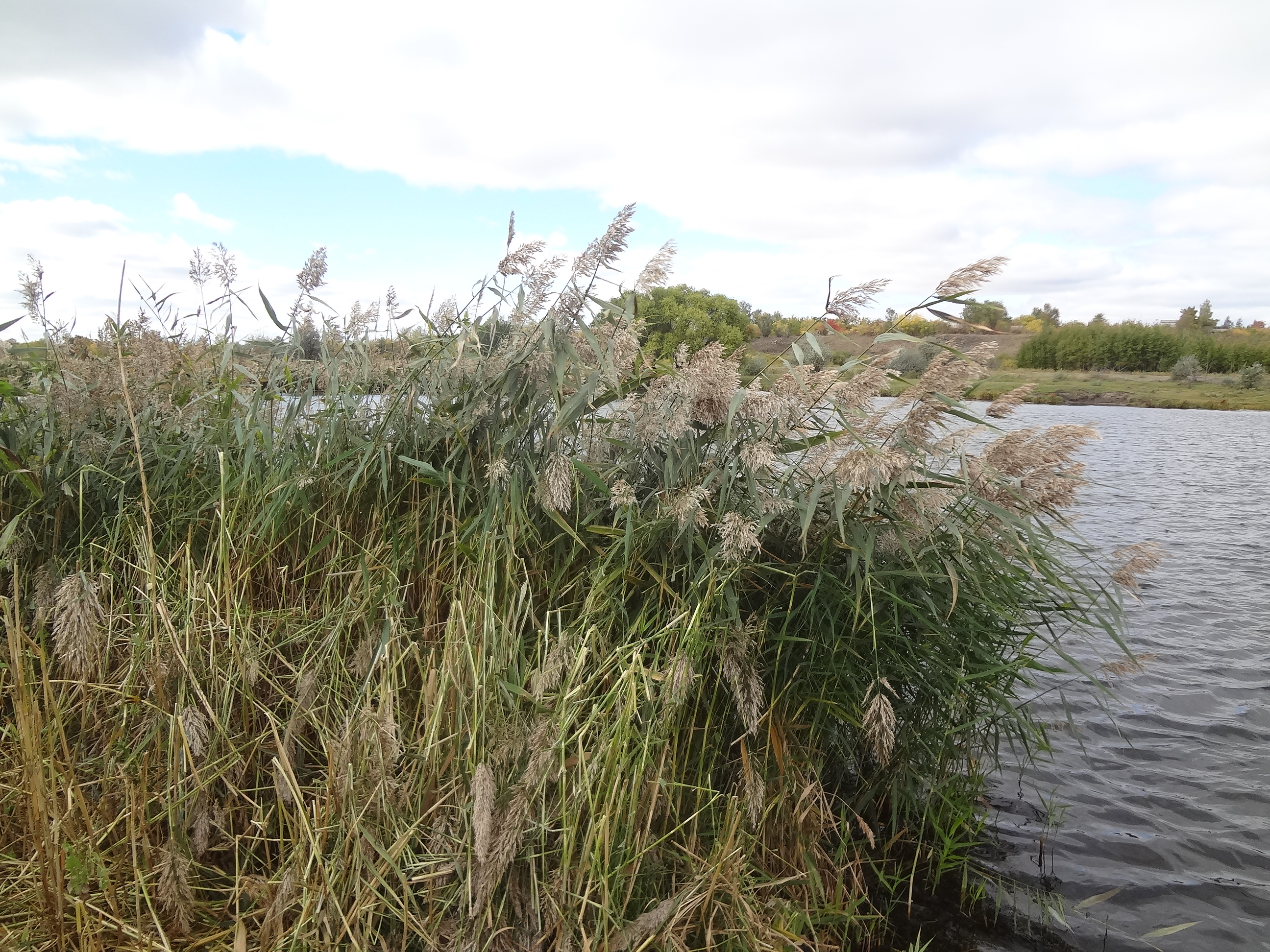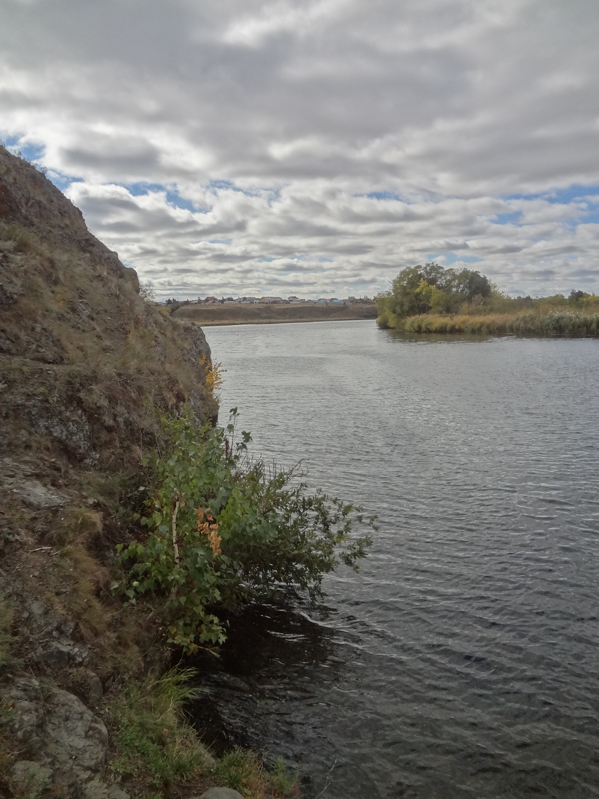 Осенний пейзаж, река и камыши.