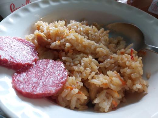 **Настало время покушать. И решил перекусить пловом и колбаской :)