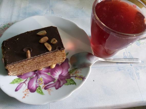 После того, как покушал можно и взять вкусненького. На первый заход я взял тортик с напитком "Швепс".