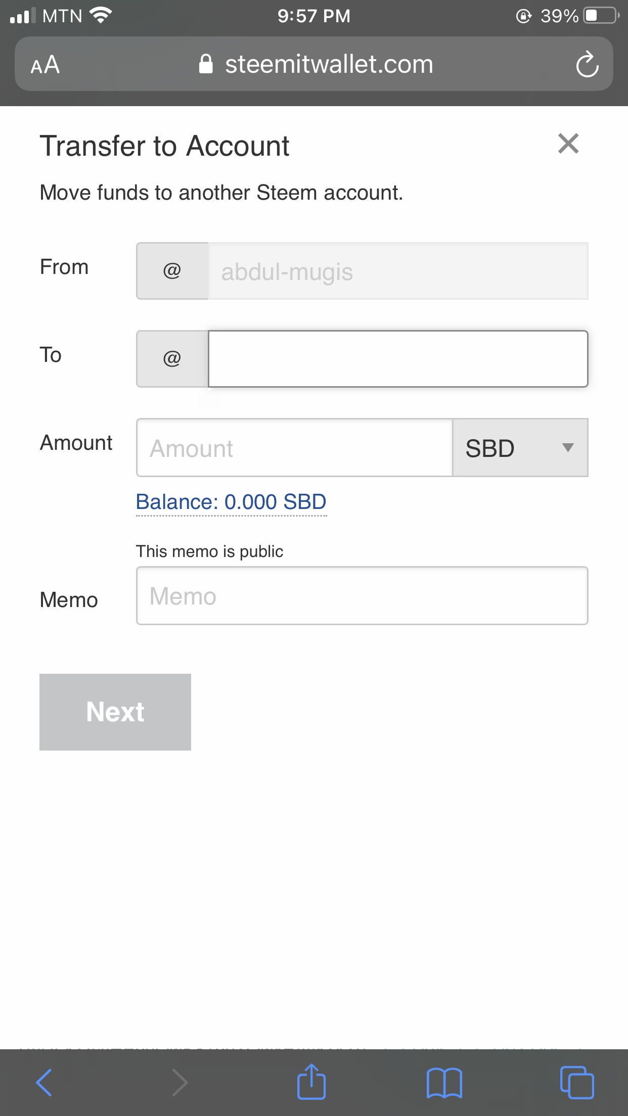 To confirm your move, enter the number and the recipient's username, then click Next.