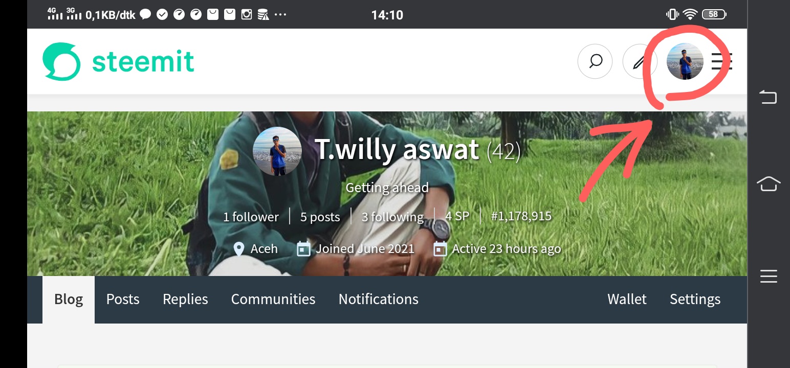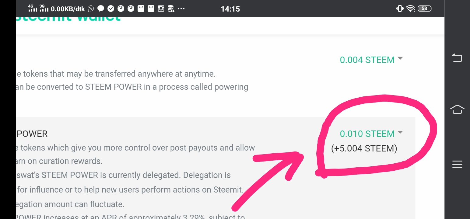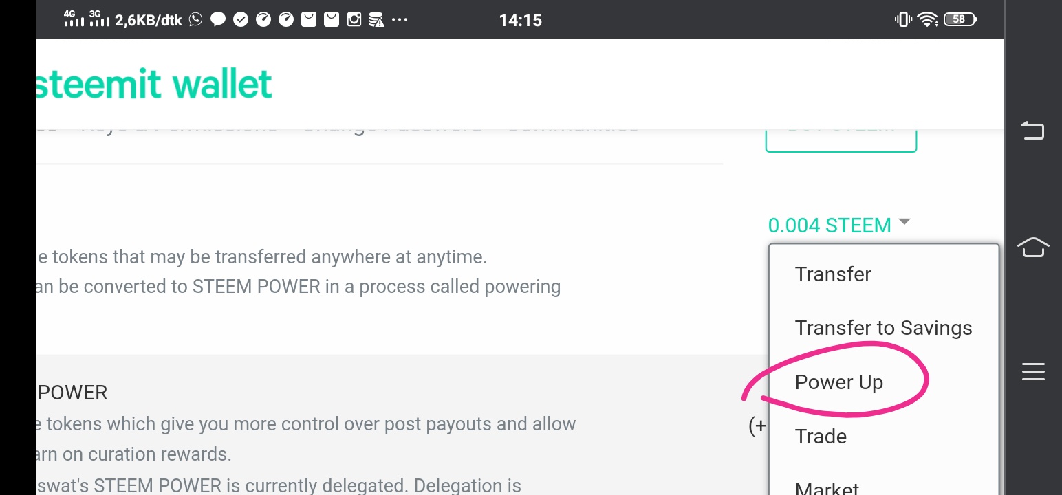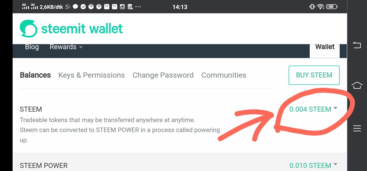 - Buka Dompet lagi, dan klik Steem