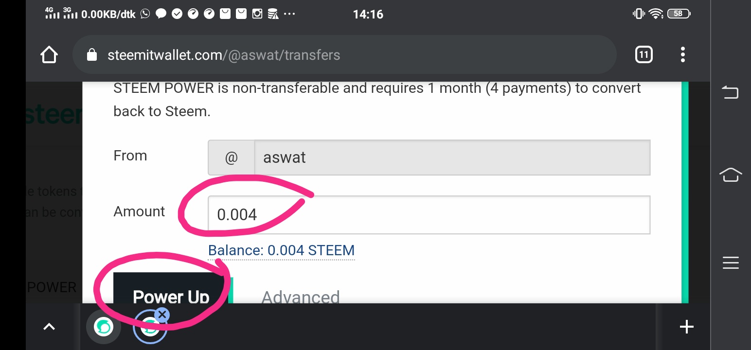 - Ketik jumlah yang Anda nyalakan dan pastikan Anda memiliki cukup dana untuk itu. dan klik power-up.