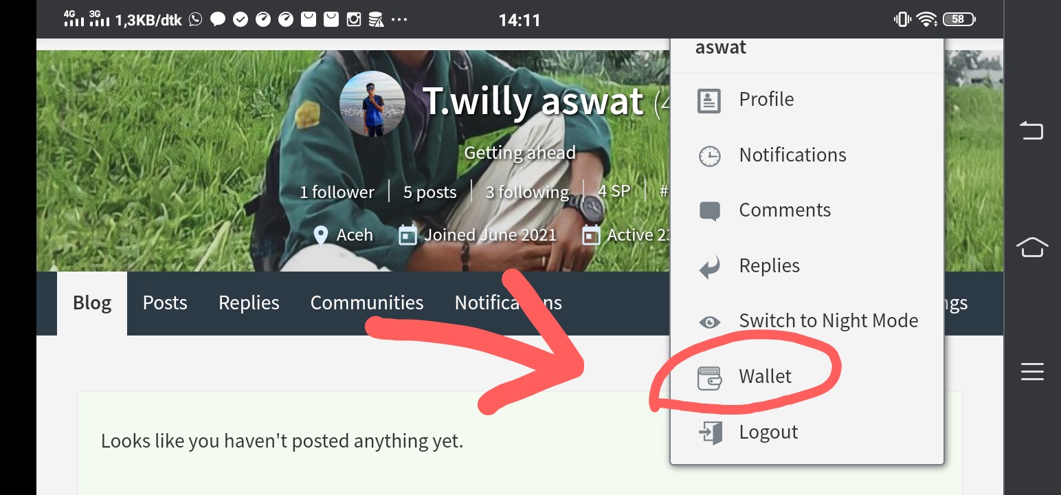- Saat menu tarik-turun muncul, Klik Dompet