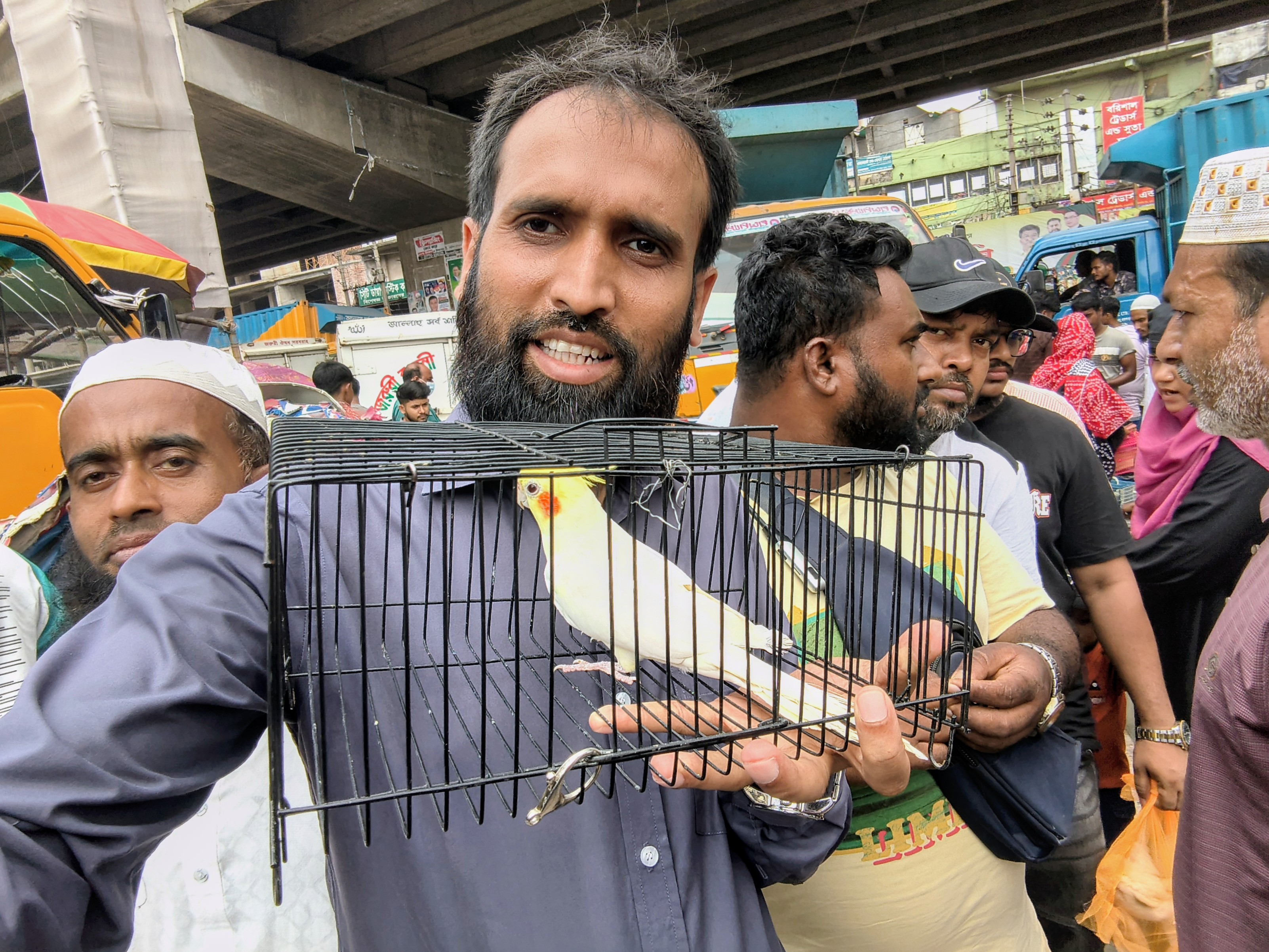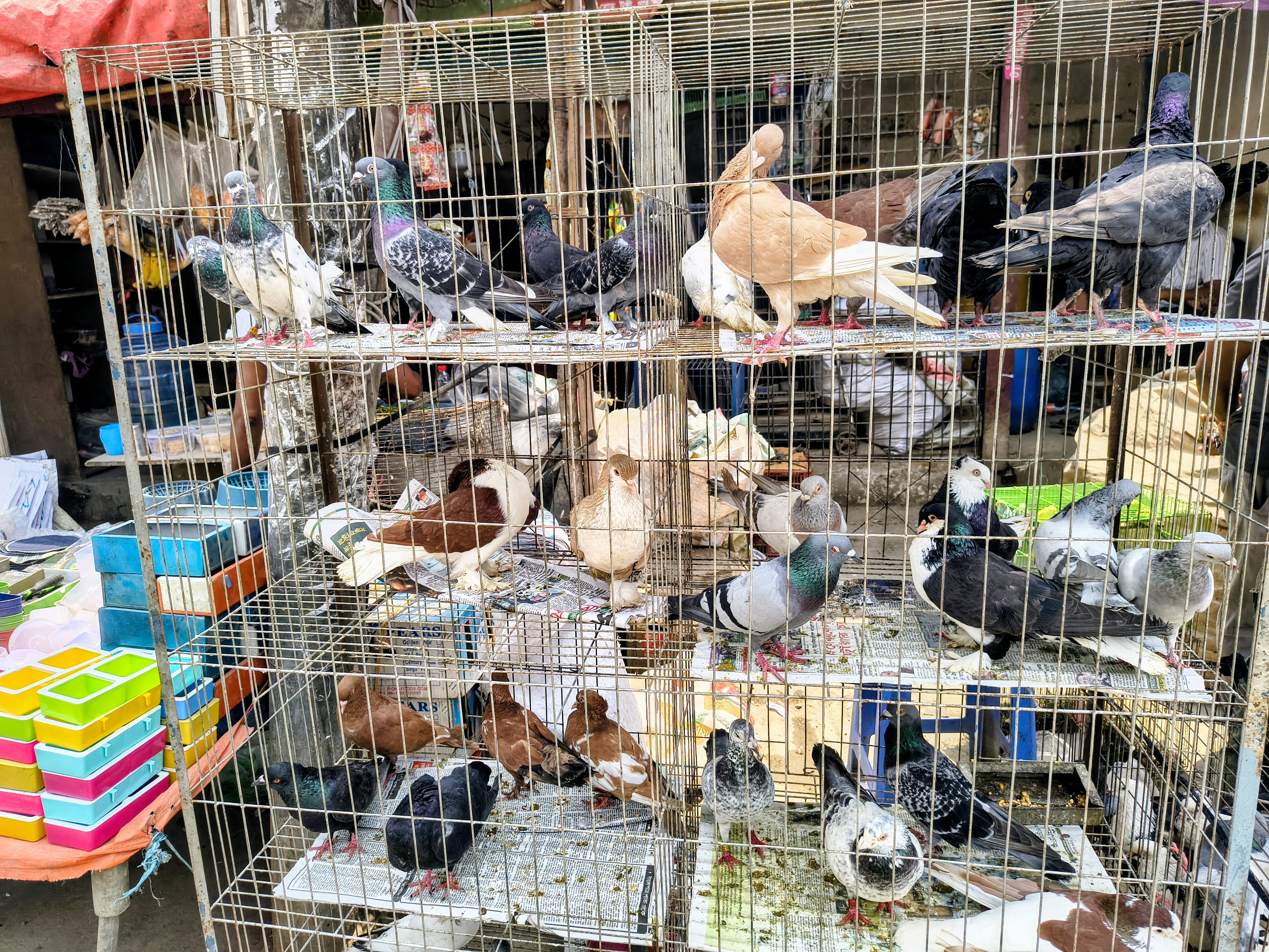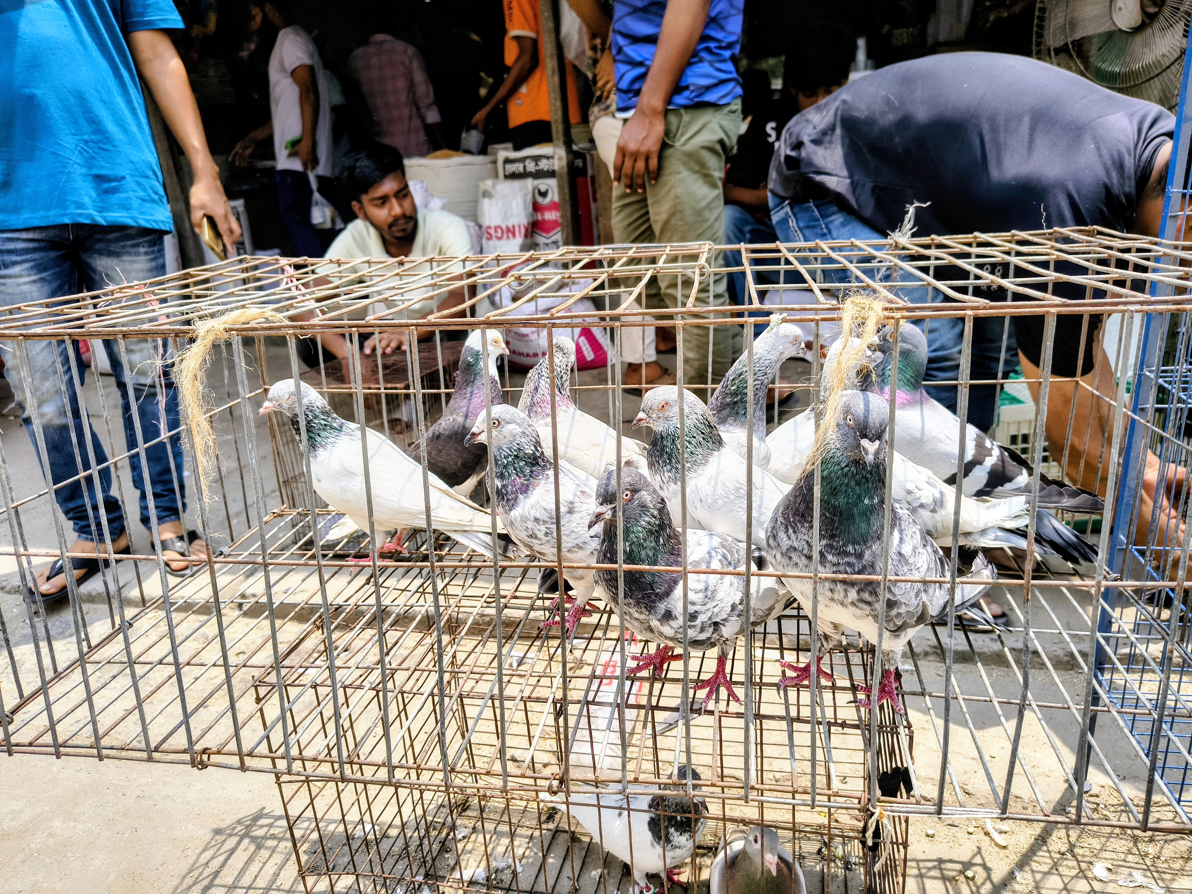 This market has a wonderful collection of different breeds of pigeons. Such as white, black, gray and the impressive purple-green shiny feather mixture pigeons. Pigeon keeping is an ancient hobby of Bengalis and they are appreciated by everyone as a calm natured bird. They are usually kept on the roof. Among the pigeons that came to this market, the Giribaj pigeon was one of them, which is known to be able to fly in the sky for a long time. Also, Gola, Siraji and various hybrid pigeons attract buyers. Their quiet chatter brings a different kind of tranquility to the atmosphere of the market. Amateur fanciers come to the market from far and wide to collect such healthy and beautiful pigeons.