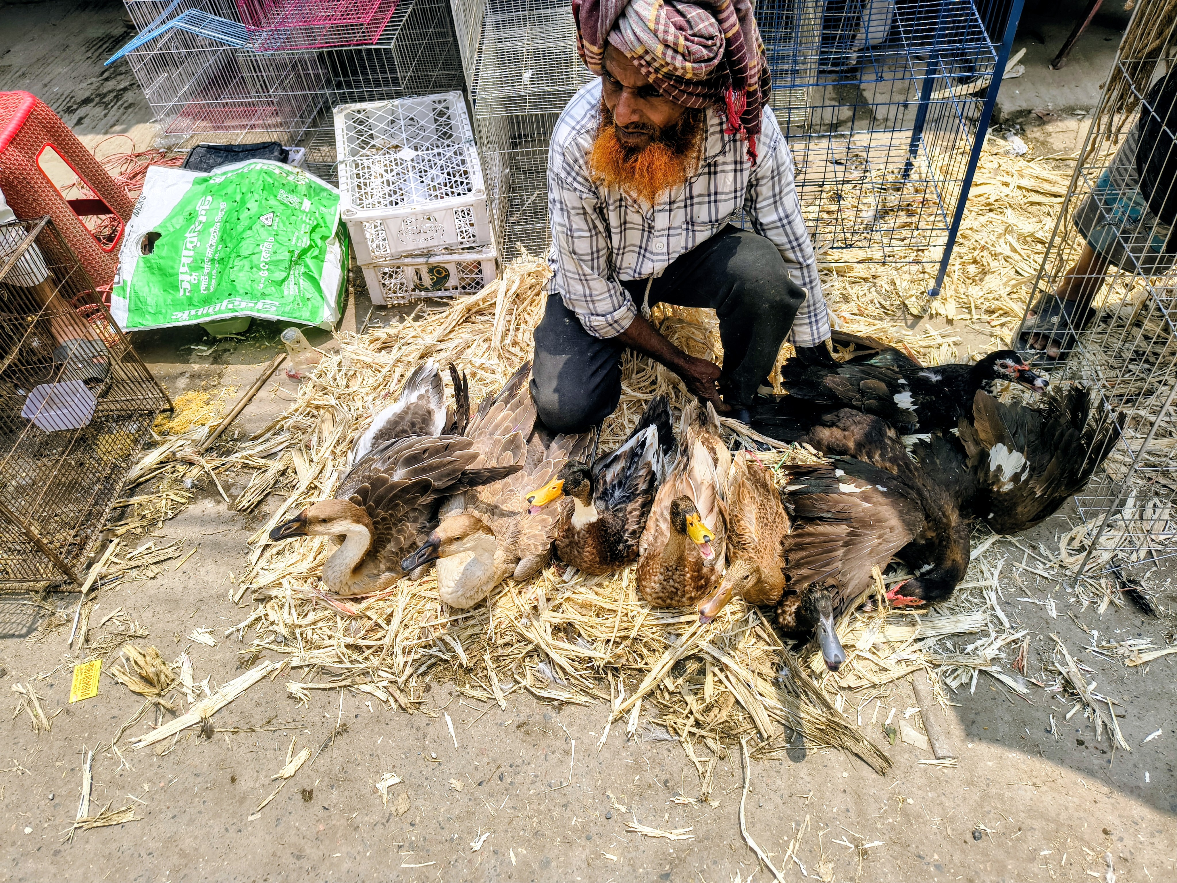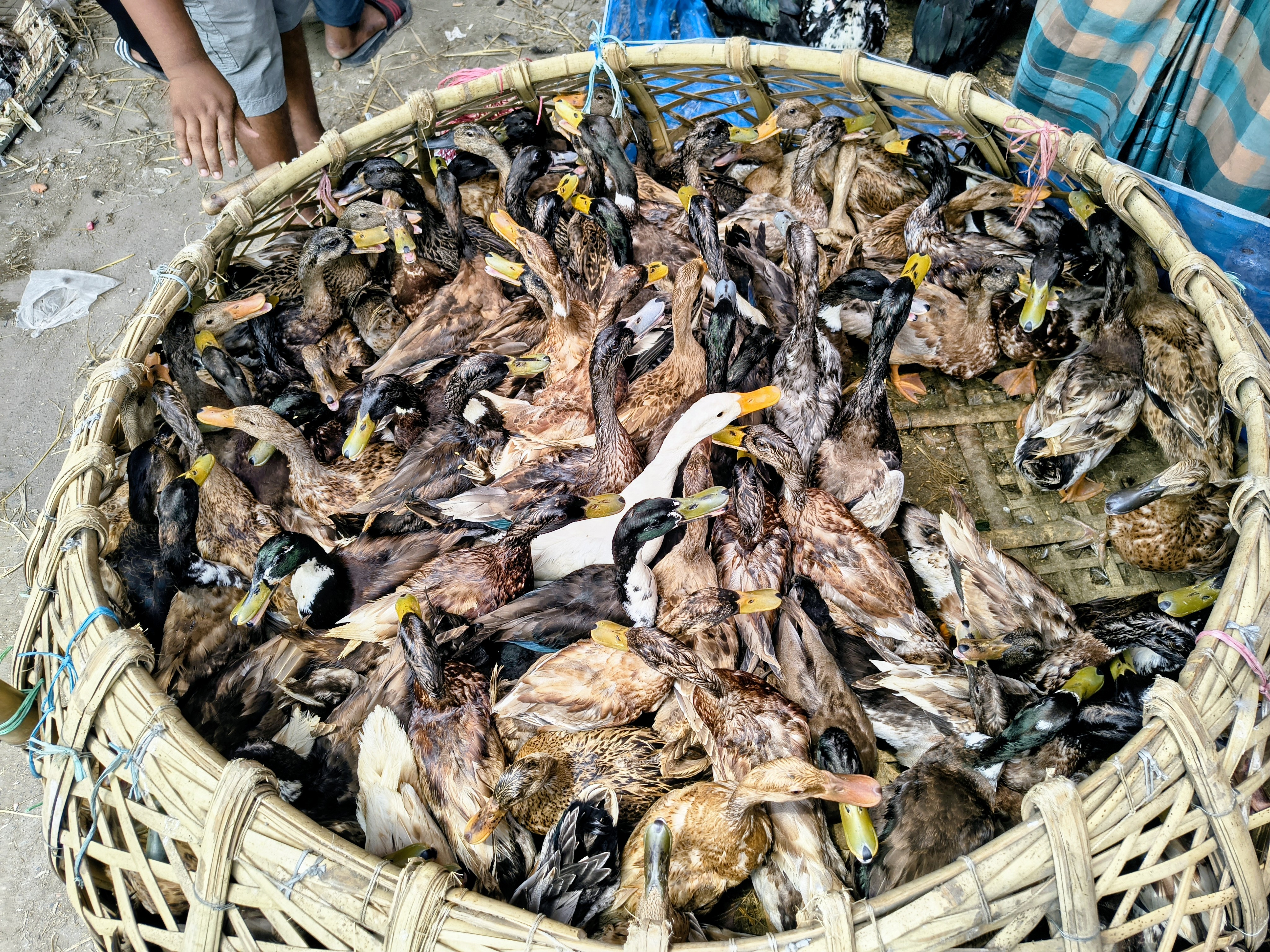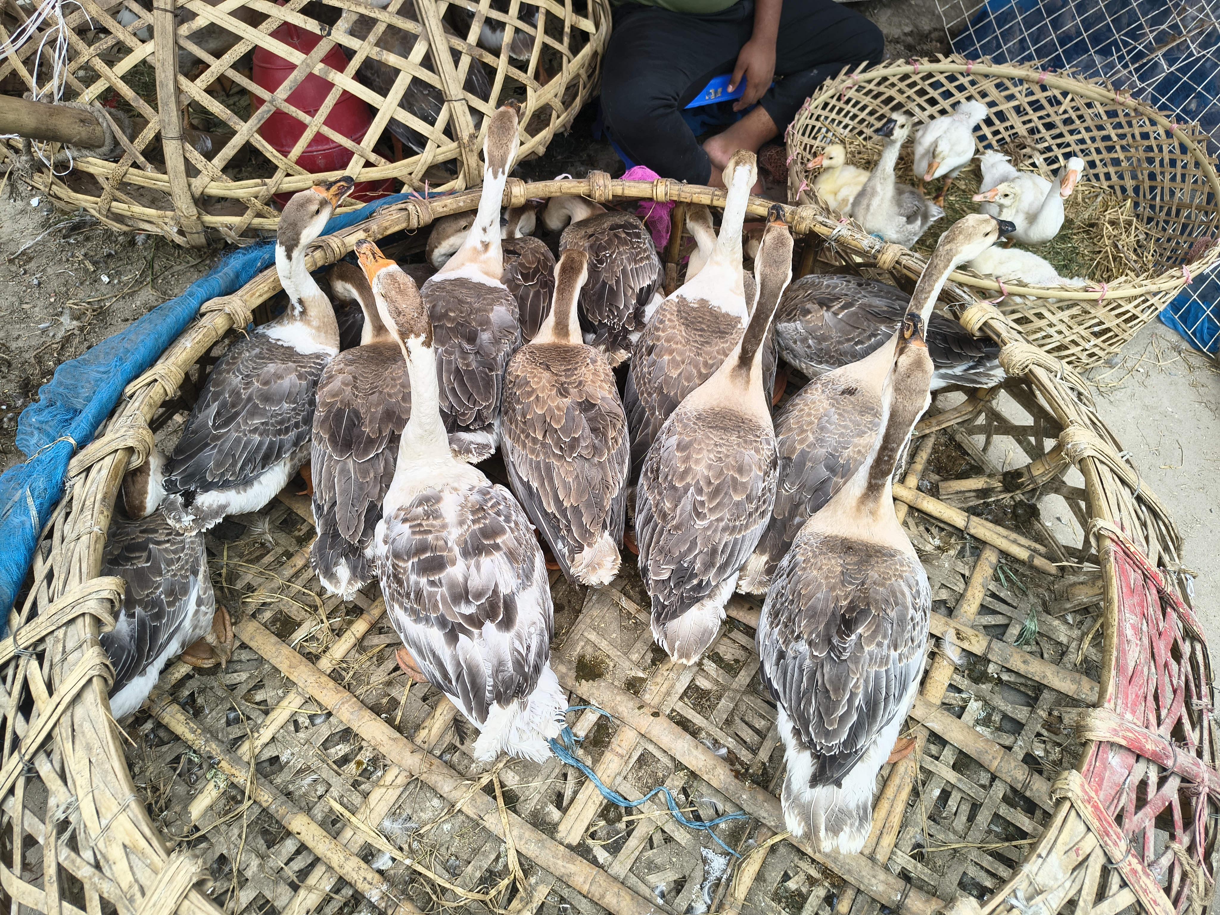 The beautiful long-necked swans add elegance to the market. These white and grey ducks usually like to stay in groups. The sight of ducks roaming the water bodies of rural Bengal is a very familiar sight to us, and in this market, we can see all the healthy native ducks and swans. Nowadays, duck meat is extremely popular and delicious, so the demand for it among the general public is very high.