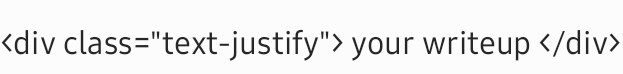 You can choose how you want your writeup to appear, whether as center, left, right or justify patterns. Although the default pattern is left.