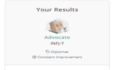 Yes! You've heard it right, an ADVOCATE!🤔 You're wondering what it is? And where it came from? Well, let me have my introduction based on my PERSONALITY TEST RESULT! If you haven't take yours, then check this out on web "http://www.16personalities.com"