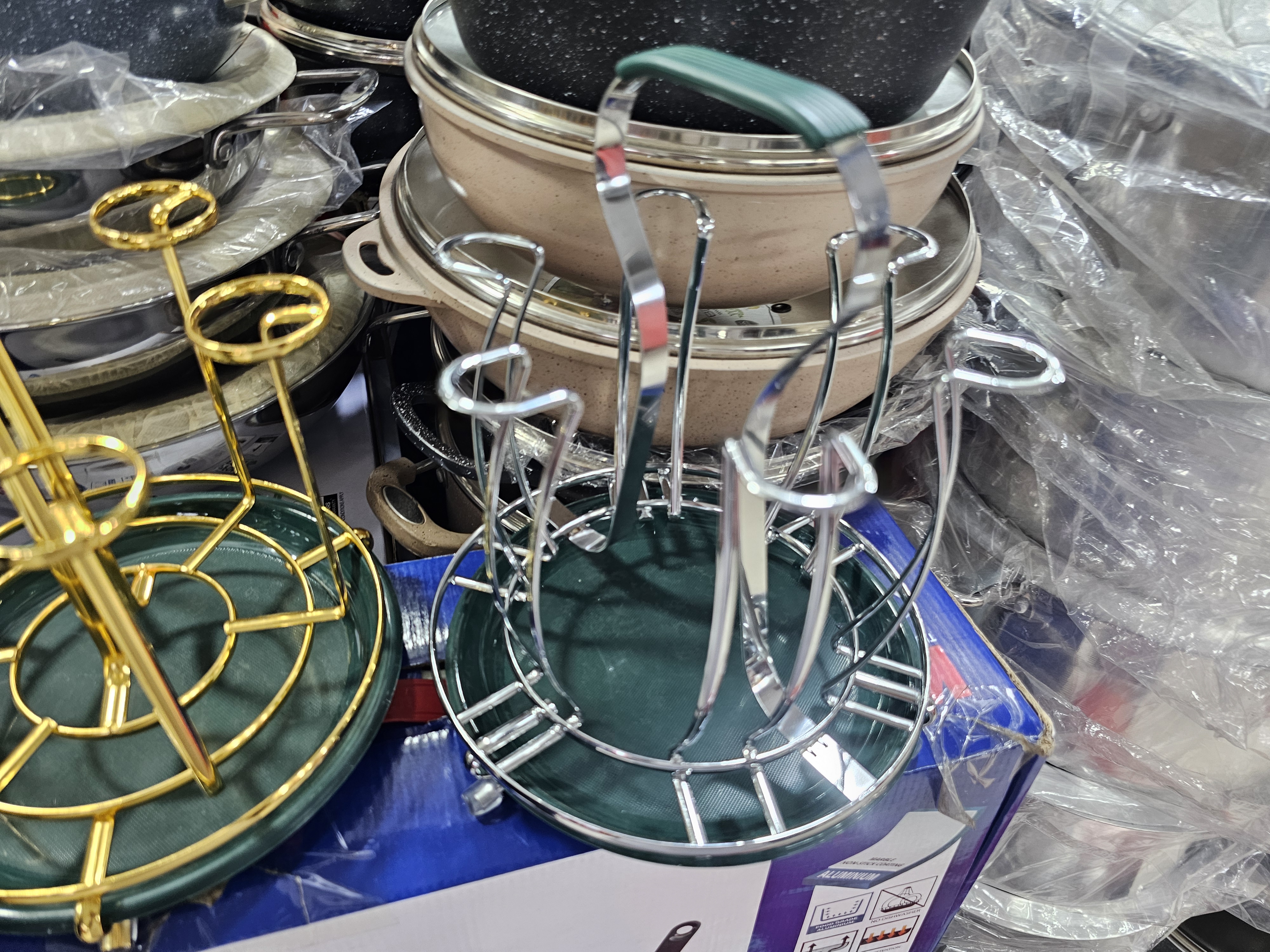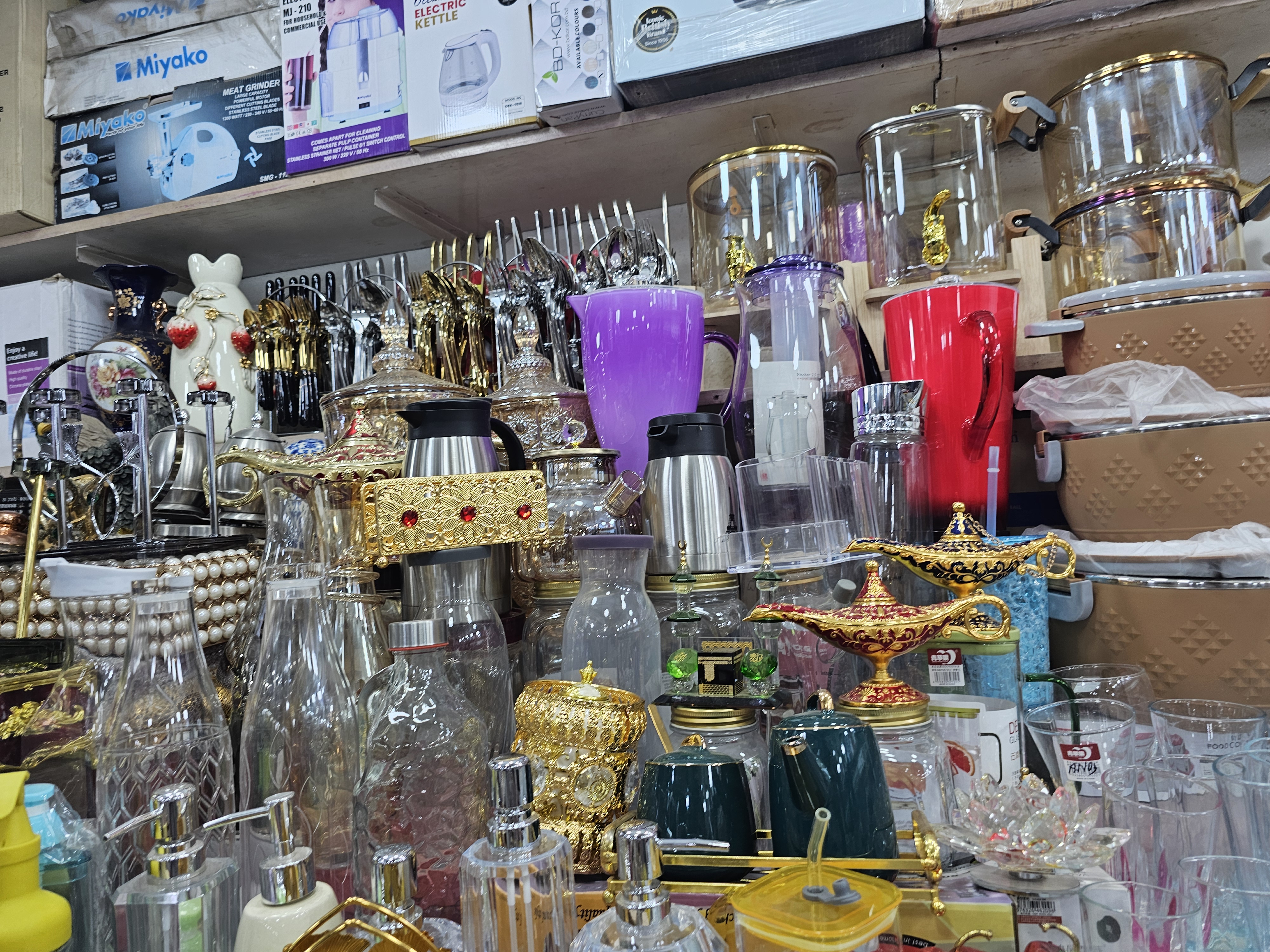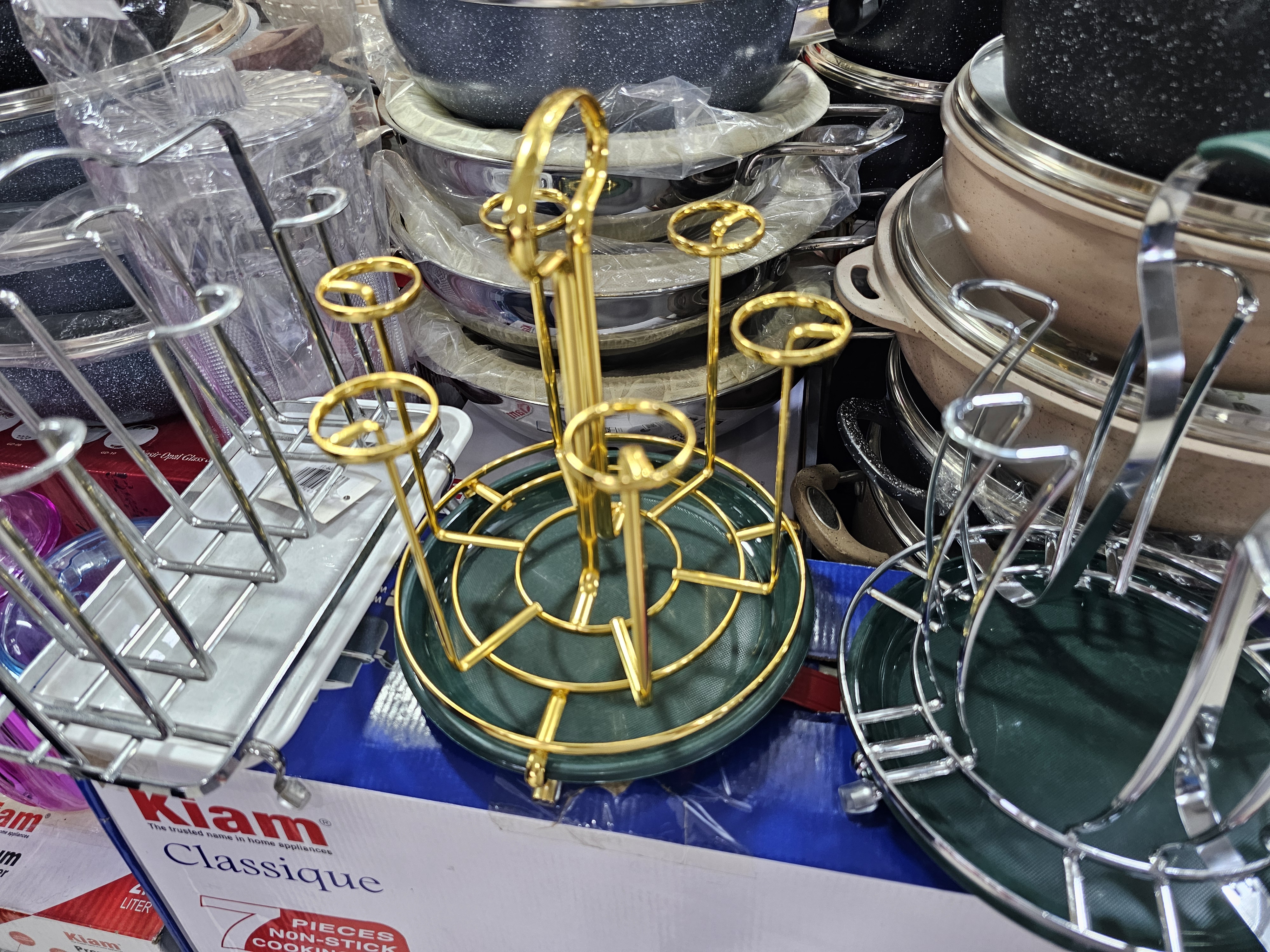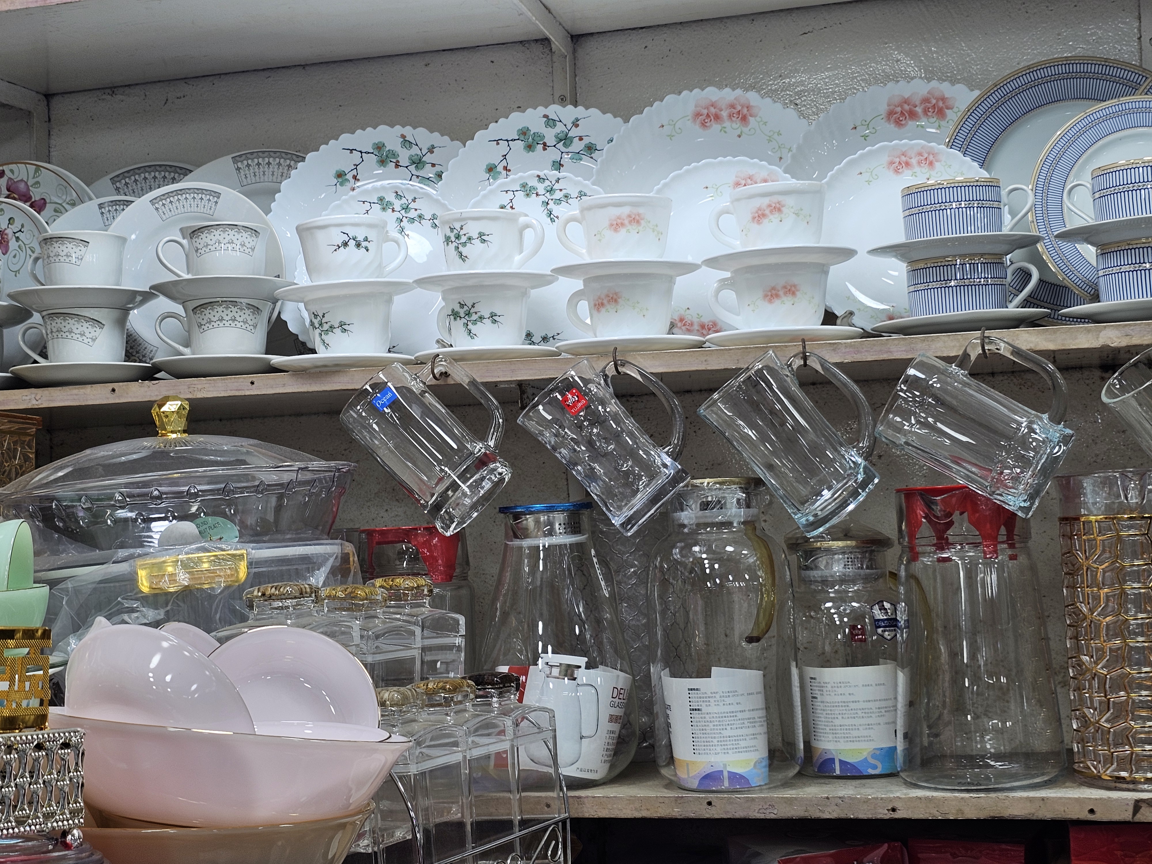 This shop has all the crockery items. There are dinner sets, bowls, glasses, glass stands, various small and large pots, pans, ovens, rice cookers, all kinds of household items. Every item is very important for all of us at home. Especially everything from cooking to eating is available here. That is, the ones we use to cook food and the ones we use for eating. There are even tissue stands, glass stands, and spoon stands to keep on the table. In other words, all the items are available in this one shop.