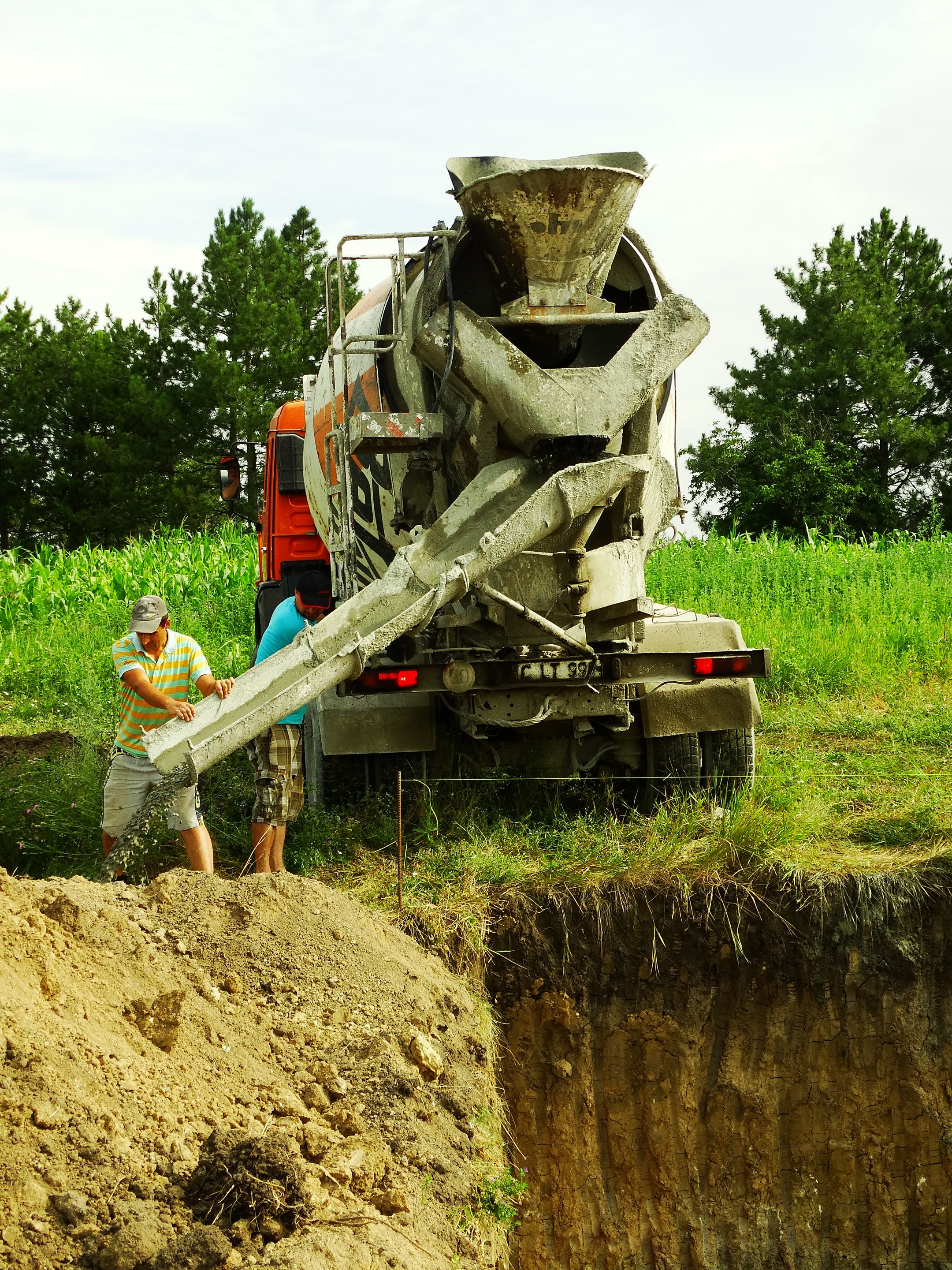 I ordered concrete mixers at the plant. I wanted to complete this stage in one day.