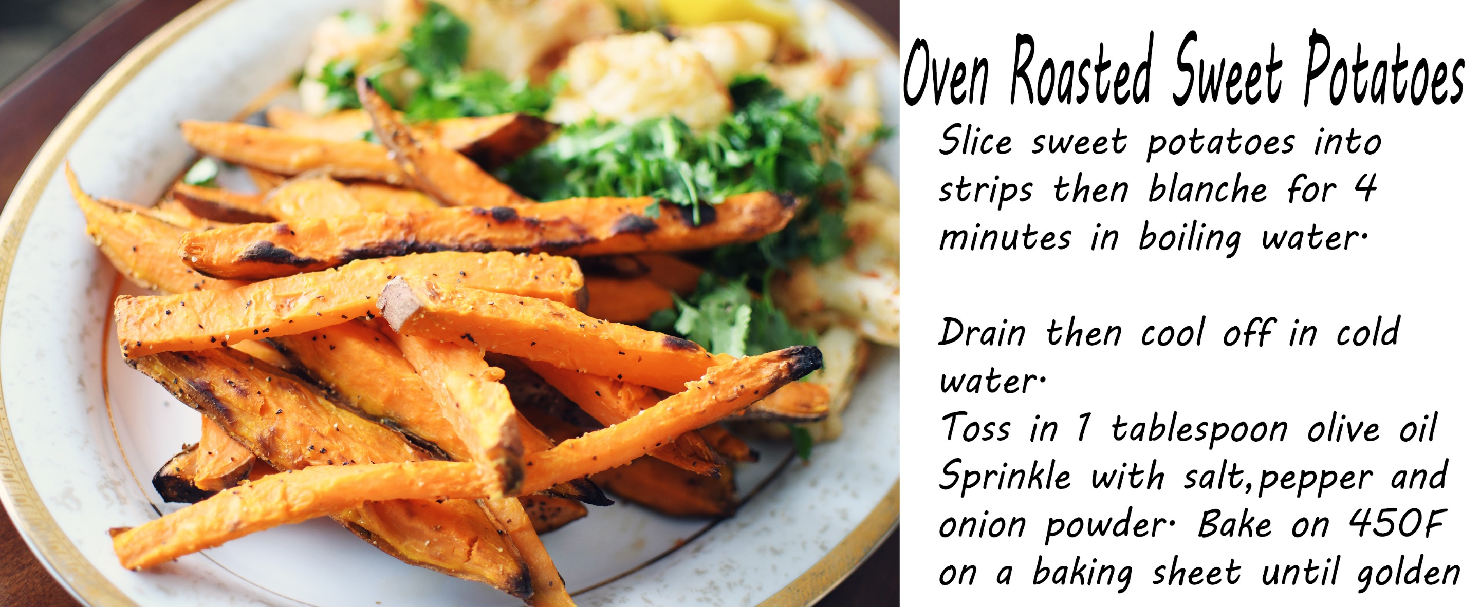 We didn't want to use too much oil so they were both thrown in the oven with just a little oil on them. The sweet potatoes would be cut like fries.