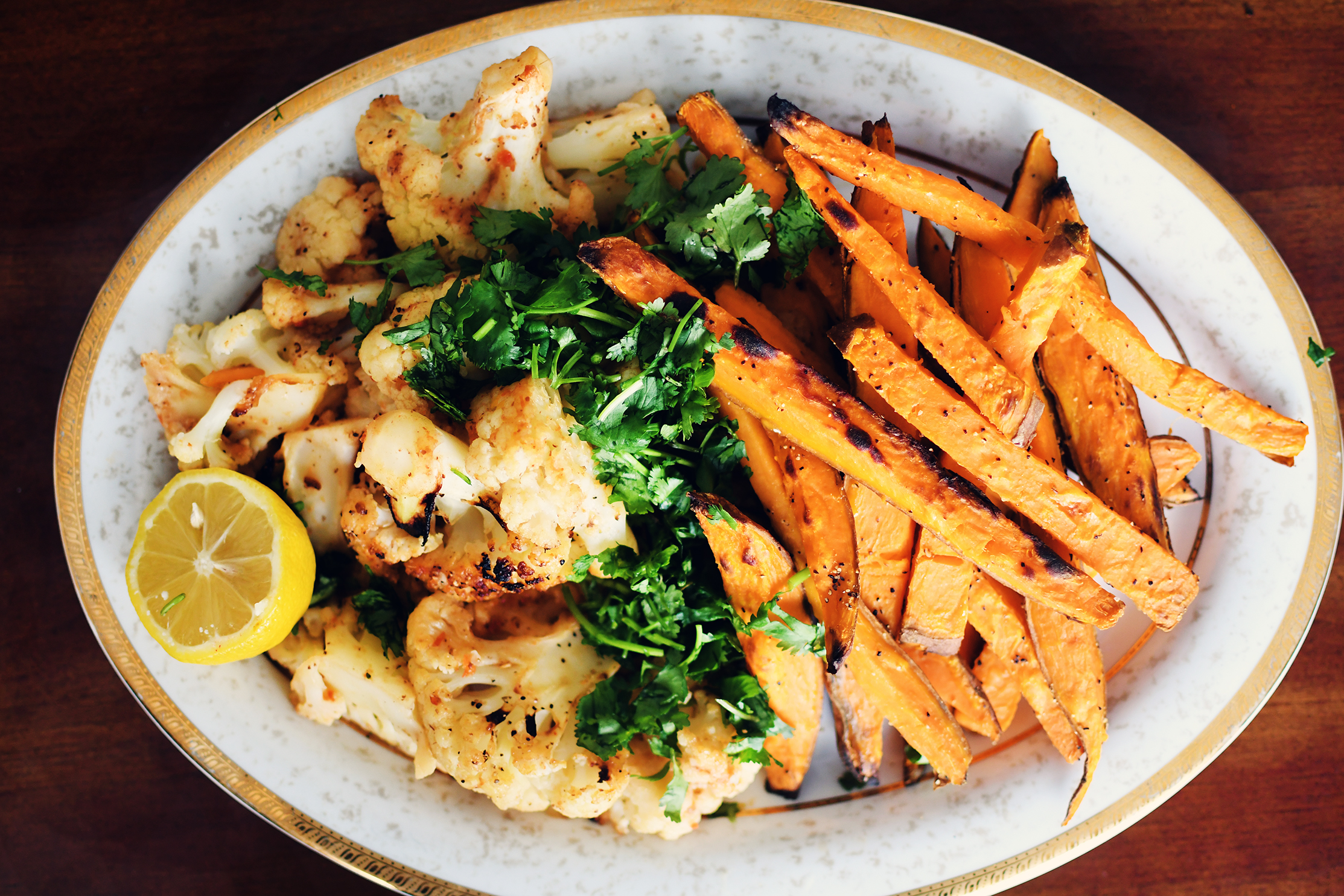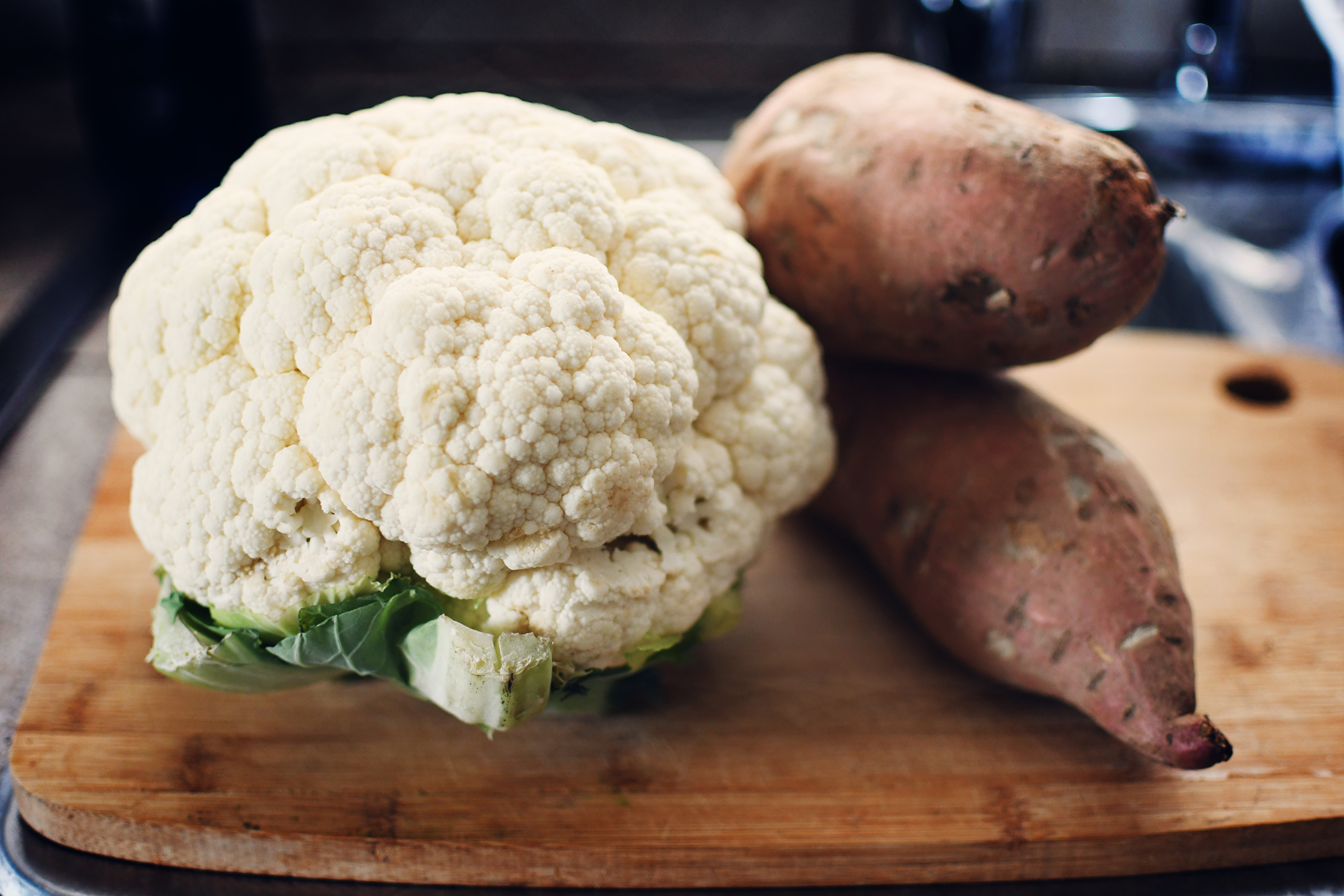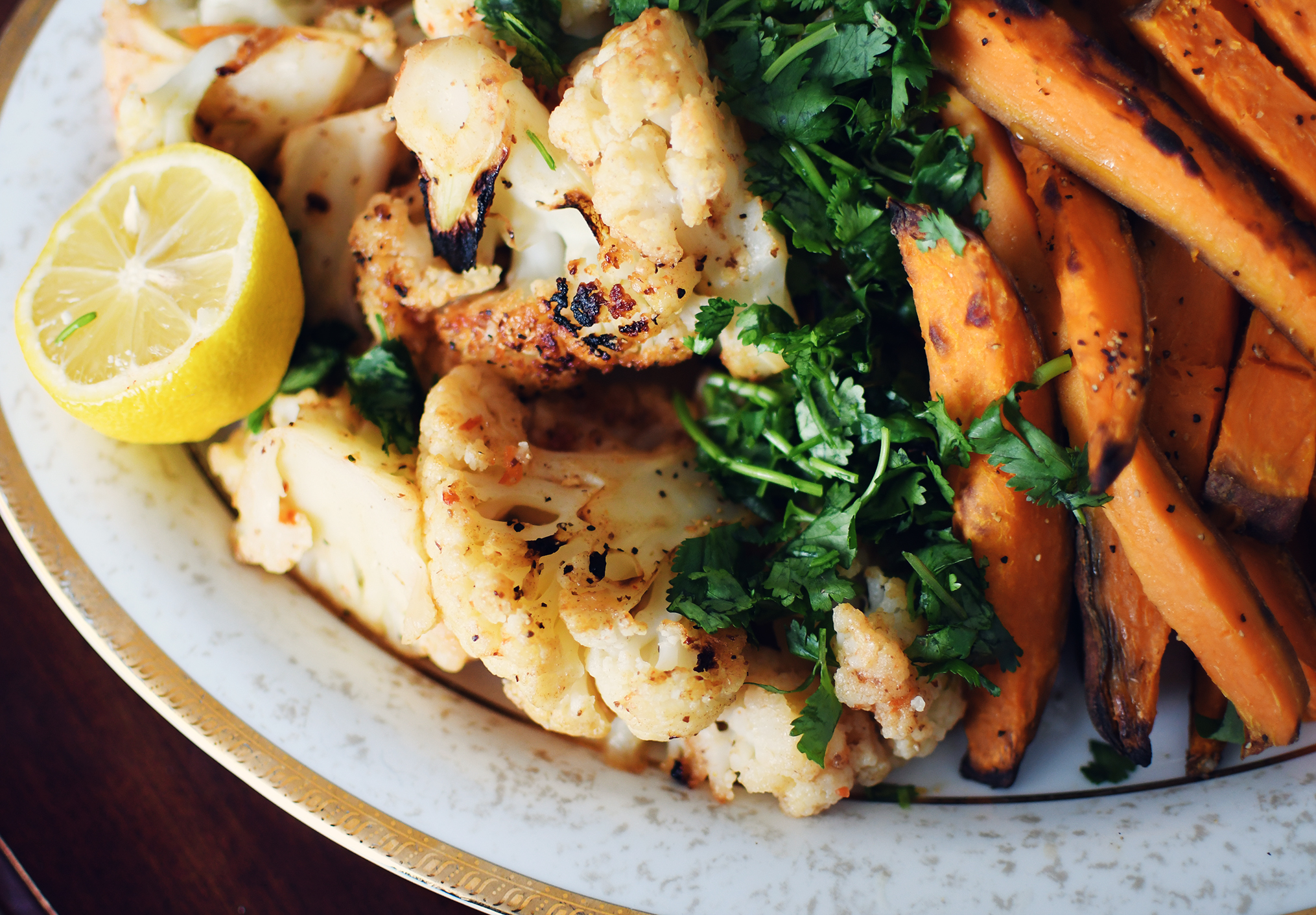I had some sweet potatoes and a cauliflower taking up room on the counter so it was the perfect accompaniment for our feast.
